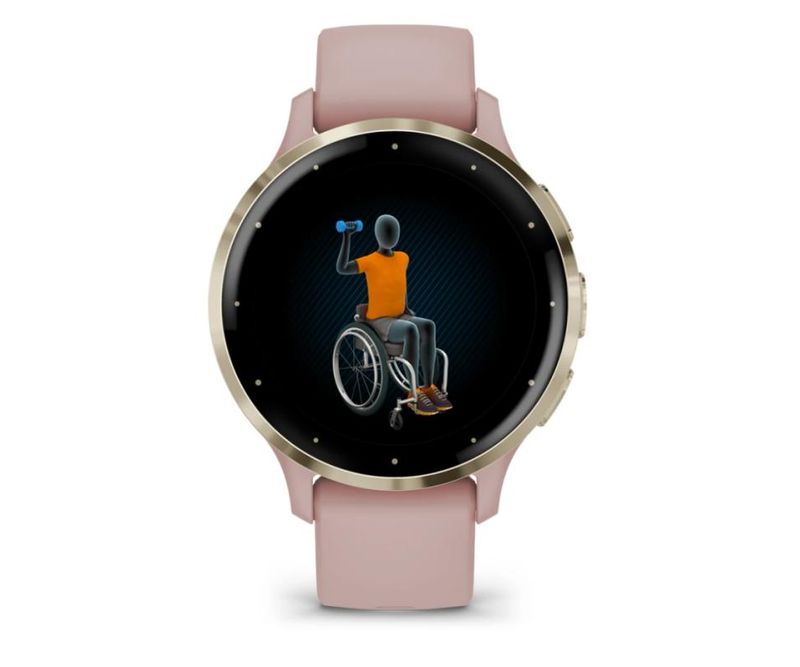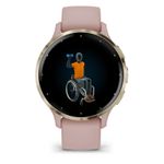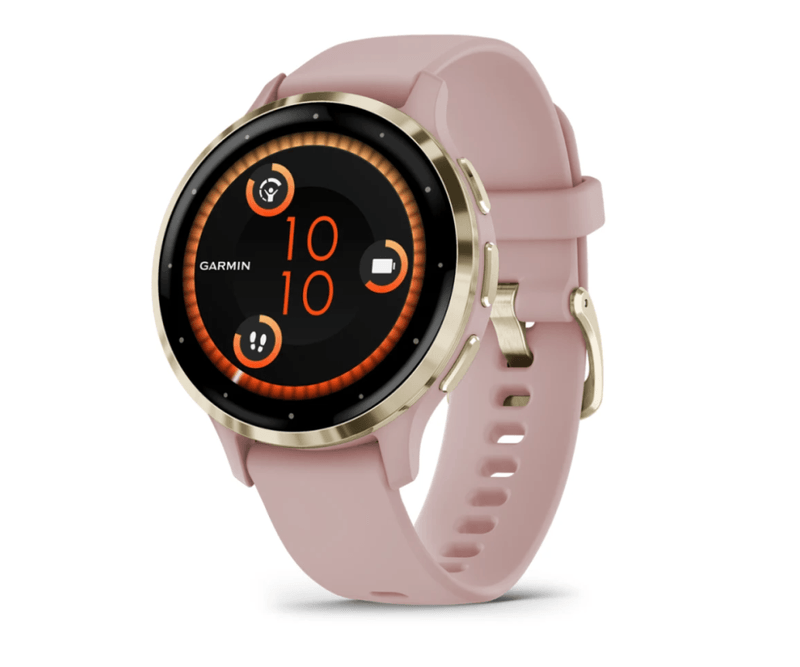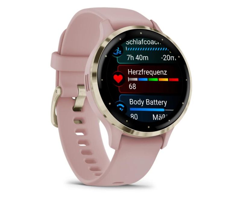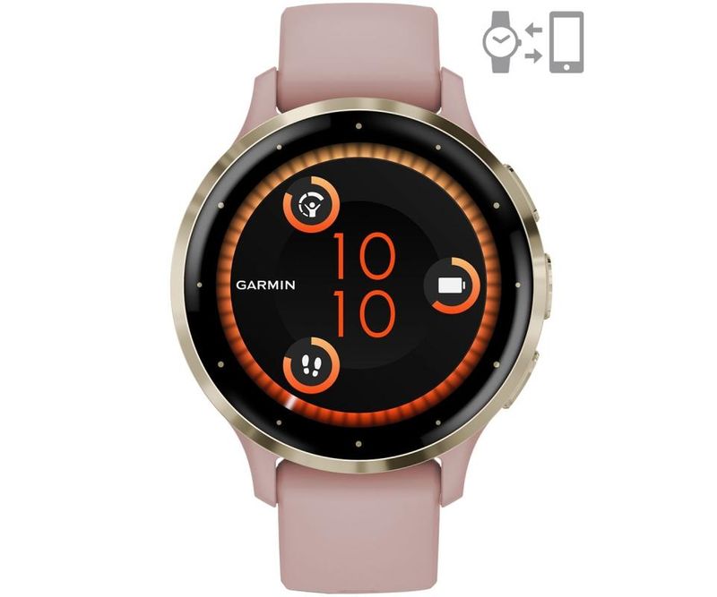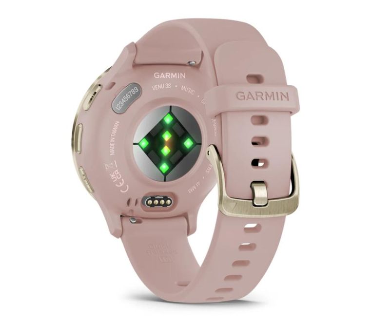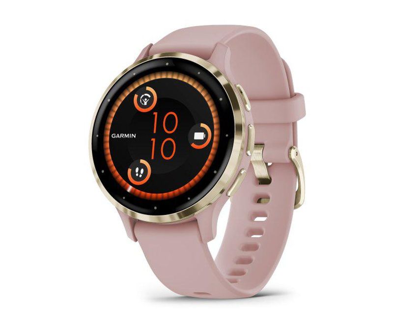 Ceas smartwatch Garmin Venu 3S display AMOLED, dimensiune afisaj 30.4 mm, rezolutie afisaj 390 x 390 pixeli, memorie 8GB, autonomie pana la 10 zile, rezistanta la apa pana la 5 ATM, rama din otel inoxidabil Soft Gold cu carcasa Dust Rose si curea din silicon, greutate: 40g