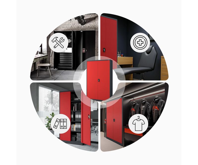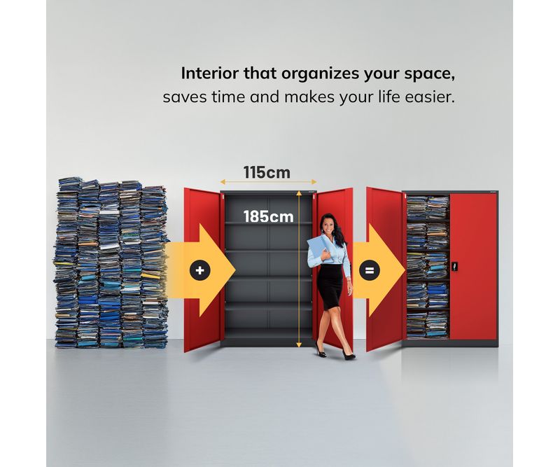 Dulap JAN II - otel, antracit, universal, pentru birou, scoala, atelier Exista multe modele de dulapuri pe piata, dar putine sunt la fel de versatile ca si dulapul metalic cu incuietoare JAN. Nu numai ca este excelent pentru depozitarea documentelor companiei, dar puteti pastra in el si medicamente sau tot felul de unelte in siguranta. Cele mai comune utilizari: dulap birou dulap medical dulap scule Companiile, scolile si birourile sunt principalii nostri clienti. Cu toate acestea, dulapurile cu incuietoare din otel JAN sunt din ce in ce mai mult folosite de persoanele fizice, care le aleg pentru a-si mobila interioarele datorita aspectului lor industrial minimalist si la moda. Dulap depozitare din metal JAN - caracteristici cheie ale produsului Dulapul de depozitare din metal JAN este un produs care nu numai ca este extrem de rezistent, dar este si conceput pentru a satisface toate cerintele utilizatorilor sai. Puteti adapta cu usurinta rafturile reglabile la nevoile D-voastra si puteti depozita in el tot ceea ce aveti nevoie. capacitate impresionanta (pana la 60 de dosare) 4 rafturi reglabile, fiecare cu o capacitate de incarcare de pana la 45 kg, reglabile in trepte de 25 mm. sistem de inchidere in 3 puncte (2 chei incluse) otel acoperit cu vopsea pulbere de 0,6 mm grosime, rezistent la deteriorari mecanice cu 2 usi dulapul nostru metalic a fost prevazut cu gauri pe partea din spate si laterala pentru a putea fi fixat pe un perete. Acest lucru va spori siguranta utilizarii zilnice. gaurile din partea superioara a dulapului fac posibila atasarea unei extensii. Specificatii - dulap metalic JAN inaltime 185 cm latime 115 cm adancime 40 cm greutate 50 kg culoare: rosu-antracit (RAL 3020 - RAL 7016) Motivul pentru care merita? Garantie de calitate - Cele mai bune materiale si fara compromisuri in ceea ce priveste calitatea fabricatiei. Siguranta - Dulapul din otel JAN este certificat de Institutul National de Igiena. Acest lucru inseamna ca il puteti utiliza liber pentru a va indeplini scopurile. RODO 2018 - Dulapul de arhivare JAN a fost dezvoltat cu scopul RODO 2018 in minte si indeplineste toate cerintele asociate cu reglementarile. Important: Dulapul de birou metalic este livrat pe bucati si, prin urmare, necesita montare. Colectia JAN NOWAK Garantia celei mai inalte calitati este oferita de marca JAN NOWAK, unul dintre cei mai mari furnizori de dulapuri metalice din Europa. Nu uitati ca, apeland la serviciile unei unitati apreciate si dovedite, va puteti baza pe produse si servicii de inalta calitate.