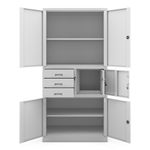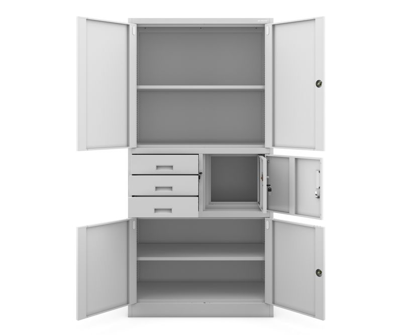 FILIP II - dulap metalic cu seif Dulapul seif cu incuietoare FILIP II primeste un feedback pozitiv din partea utilizatorilor si este recomandat cu incredere. Conceput pentru multiple sarcini. Echipat cu un seif cu incuietoare codata Certificata ( atestat PZH) Zaruka kvality - Najlepsie materialy a ziadne kompromisy v spracovani. In conformitate cu reglementarile RODO 2018 Dulap metalic FILIP II - cine are nevoie de el cel mai mult? Dulapul metalic FILIP II este perfect pentru orice mediu de lucru (companii, birouri, cabinete de avocatura, universitati, scoli...). Dar nu numai - daca aveti un atelier sau un cabinet medical privat, il puteti utiliza, de asemenea, in deplina satisfactie! Dulapul nostru metalic a fost prevazut cu gauri pe partea din spate si pe lateral pentru a putea fi fixat pe un perete. Acest lucru va mari siguranta utilizarii zilnice. Gaurile din partea superioara a dulapului va permit sa atasati o extensie. Dulap birou FILIP II - mai multe avantaje intr-un singur dulap! Capacitate surprinzatoare - Dulap pentru 30 de dosare si nu numai! Utilizati suplimentar 3 sertare, un dulap si un seif! Caracteristici de securitate - Blocaje in 3 puncte si seif securizat suplimentar cu o incuietoare cu cifru. Durabilitate si fiabilitate - Otel gros (0,6 mm). Acoperit cu vopsea pulbere. Rezistent la deteriorari mecanice. Design modern - Realizat estetic, perfectionat din toate punctele de vedere. Dulap pentru dosare FILIP II inaltime 185 cm latime 90 cm adancime 40 cm greutate 52.4 kg Livrare si montare dulapul este livrat in bucati pentru a fi asamblat Sunt incluse instructiuni clare, iar montarea in sine este simpla si nu necesita mult timp. Colectia JAN NOWAK Fiind unul dintre cei mai mari furnizori de dulapuri metalice din Europa, oferim clientilor nostri cea mai buna calitate la preturi accesibile.