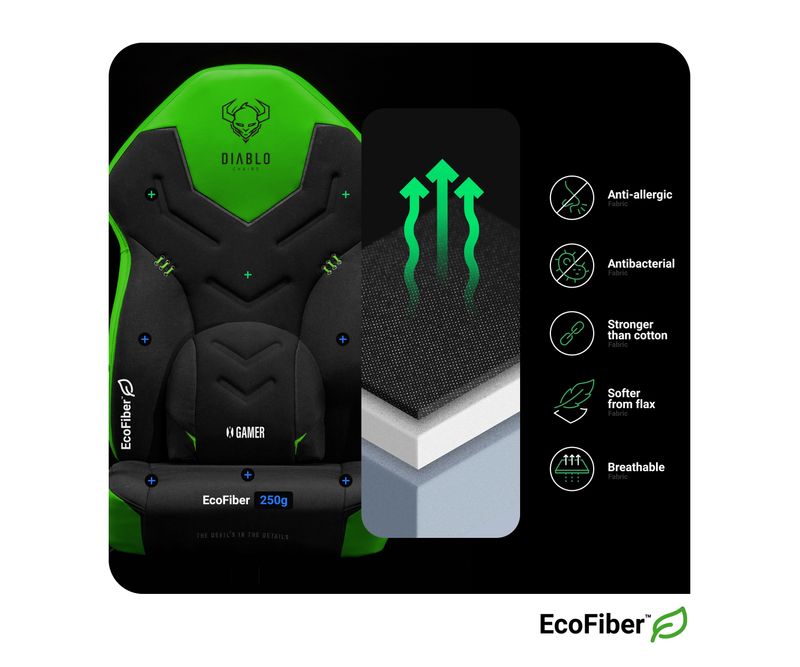SCAUN GAMING DIABLO X-GAMER GREEN EMERALD: NORMAL SIZE Beneficiati de cea mai mare placere in timpul jocului si homework, studiile la distanta devin confortabile si complet in siguranta. Scaunul inovativ de gaming Diablo X-Gamer confera confort la maxim si asigura pozitia corecta la masa. Cunoaste-l mai bine si vezi ca te asteapta un pachet intreg de beneficii. TAPITERIE DIN MATERIAL ECOFIBER™ Diablo X-Gamer a fost confectionat din material extrem de durabil EcoFiber™. Este extrem de rezistent la abraziune, astfel ca isi va pastra aspectul perfect timp de mai multi ani, precum si stilul datorita caruia, noul scaun de gaimg va va oferi confortul necesar si va va proteja silueta de supraincalzire. Cu Diablo X-Gamer, fiecare joc va fi pe deplin confortabil. SCAUNUL ARE UMPLUTURA CU SPUMA SPECIALA Constructia sportiva a scuanului este umpluta cu spuma HR, ceea ce va va oferi o pozitie extrem de confortabila. Suplimentar spatar mare Comfort Layer™ cu mai multa umplutura de spuma, deci Diablo X-Gamer este un scaun comod si moale! SPRIJIN PENTRU COLOANA LOMBARA Diablo X-Gamer este echipat cu o perna lombara ergonomica umpluta cu spuma HR elastica, datorita careia va proteja perfect coloana vertebrala inferioara impotriva luarii unei pozitii incorecte. Datorita acestui fapt, veti evita consecintele pozitiei incorecte la masa. Perna nu are suporturi sau montata pe scaun, asa ca o poti folosi nu numai pe scaunu de joc, ci oriunde ai nevoie ca spatar moale si confortabil. REGLARE FUNCTIONALA SIstemUL Tilttech™ Butterfly va va permite sa reglati nivelul scaunului in raport cu inaltimea mesei si inaltimea Dvs, ceea ce va va ajuta sa va asumati pozitia potrivita si sa asigurati un confort extraordinar, chiar si dupa multe ore de joc, munca sau studiu. Functia Tilttech™ Swing va permite sa va relaxati din plin.Puteti regla cu usurinta presiunea necesara pentru a inclina scaunul si spatarul, iar ajustarea acestuia la greutatea Dvs. va va permite sa va balansati pe scaun. Diablo X-Gamer se inclina pana la115°! AMORTIZARE EXCELENTA Te asteapta confort la maxim, deoarece Diablo X-Gamer se va potrivi excelent miscarilor tale. Amortizarea potrivita se datoreaza sistemului puternic Tilttech™ Lift cu mecanism inclus Air Damper™ System. Punem accentul pe confortul maxim! COTIERE COMODE Cotierele comode Armtech™ Hold SoftTouch va vor usura eficient umerii, antebratele si incheieturile la fel veti avea o pozitie corecta la masa, ergonomica. Partea de sus a cotierelor este umpluta cu spuma, astfel incat acestea sunt corespunzator de moi si ofera un suport extrem de confortabil. ROTI DIN CAUCIUC PFC™360, 60 mm Diablo X-Gamer are roti excelent cu strat de cauciuc. Datorita lor, puteti folosi scaunul pe orice suprafata si nu va faceti griji pentru zgarieturi pe podea. DESIGN STIL DIABLO Spatarul scaunului confectionat din piele ecologica HDS™, datorita caruia noul tau scaun de joc va crea o impresie excelenta si atrage atentia. Silueta impresionanta si structura masiva fac ca Diablo X-Gamer sa arate minunat in camera Dvs. de joc, iar broderia expresiva Diablo si detaliile intunecate confera stil original. Aceasta este combinatia perfecta de inovatie tehnica si stil original Diablo. Alegeti solutii fiabile si observa ca munca zilnica, studiile si divertismentul pot deveni pe deplin confortabile si sigure pentru sanatatea Dvs.