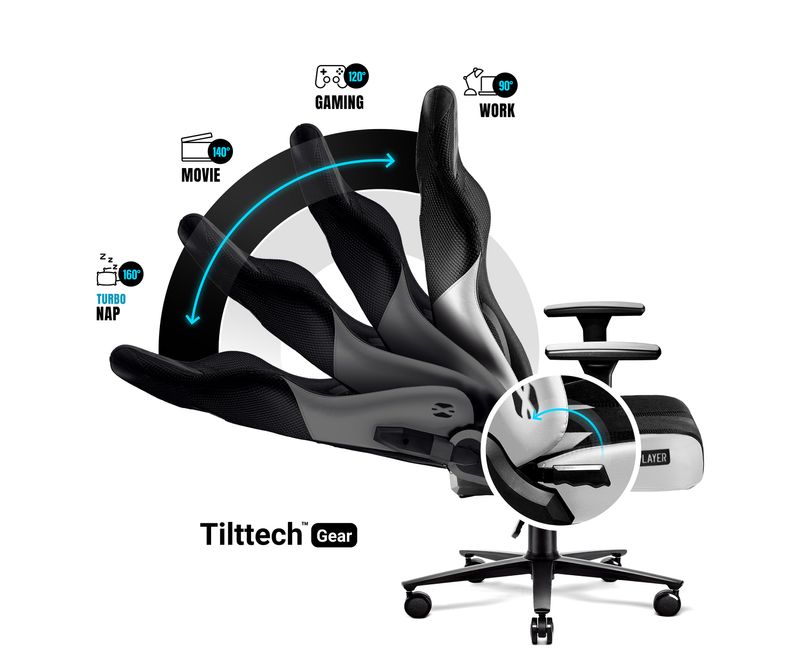 Un scaun confortabil pentru jocuri nu poate fi lipsit de tetiera si perna lombara. Fara ele, este dificil sa vorbim despre o ergonomie adevarata. Tetiera conturata sustine perfect gatul si ceafa, in timp ce perna mentine partea inferioara a spatelui in pozitia corecta. Secretul consta in spuma inteligenta cu memorie, care se adapteaza cu precizie la forma corpului, reduce durerea si imbunatateste concentrarea. Oferiti-va spatelui putina relaxare cu sistemele Tilttech™