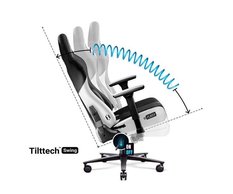 In plus fata de mecanismul Tilttech™ Butterfly, scaunul de gaming iti permite sa reglezi cu usurinta inaltimea scaunului in functie de inaltimea ta si de inaltimea biroului. Mecanismul Tilttech™ Gear iti permite sa schimbi rapid unghiul spatarului, iar cu Tilttech™ Swing te poti bucura oricand de o functie relaxanta de balansare.Cotiere reglabile pentru libertate completa