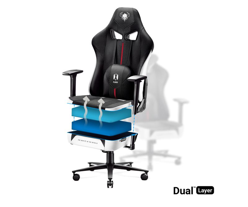 Scaun de gaming pentru birou – aliatul tau in lupta pentru ergonomie Cateva ore de jocuri iti provoaca dureri de spate in loc sa-ti dea un plus de energie? Te-ai saturat de muschii incordati constant si de senzatia de epuizare? Vinovatul poate fi un scaun de birou ales necorespunzator. Coloana vertebrala are nevoie de sprijin profesional, iar cand vine vorba de sanatate, nu exista loc pentru compromisuri. Scaunul de gaming din tesatura Diablo X-Player 2.0 a fost creat pentru cei mai exigenti jucatori care apreciaza spatiul. Chiar si persoanele inalte pot sta confortabil in acest scaun.Caracteristici cheie ale scaunului mare pivotant: Tetiera conturata si perna lombara din spuma cu memorie Scaun confortabil cu doua straturi Mecanisme Tilttech™ pentru o potrivire perfecta Tapiterie durabila si respirabila Cotiere reglabile in trei pozitii Miscare lina datorita rotilelor acoperite cu cauciuc Baza robusta si sigura, cu ridicare intarita Scaun de gaming alb-negru – confort in stilul campionatului Acest scaun pivotant mare combina aspectul excelent cu performanta impecabila. Forma sportiva a scaunului si schema de culori alb-negru sunt atragatoare. X-Player 2.0 creeaza automat o atmosfera unica, cu un plus de gaming. Constructia intarita a scaunului de birou inveleste si stabilizeaza perfect corpul, reducand tensiunea musculara si asigurand un confort de lunga durata. Tapiterie rezistenta si culori intense In timpul muncii intense si al jocurilor, o ventilatie adecvata este de o importanta capitala. De aceea, tapiteria scaunului de gaming a fost rafinata in fiecare detaliu. Confortul tau, chiar si in zilele toride, este asigurat de o combinatie de tesatura EcoFiber™ durabila, plasa Diablo Honeycomb™ respirabila si elemente din piele ecologica HDS. Scaunul din tesatura este rezistent la abraziune, iar culoarea ramane la fel de vie ca in prima zi, chiar si dupa ani de utilizare. Scaun spatios cu spuma dubla Diablo X-Player 2.0 – asa cum se cuvine unui scaun de gaming mare – ofera suficient spatiu chiar si pentru persoanele inalte. In scaunul Dual Layer™, toata lumea va simti confortul demn de un campion. Umplutura din spuma HR cu doua densitati diferite va permite sa stati nu numai stabil, ci si extrem de confortabil.Detalii ergonomice care fac diferenta Fie ca esti un jucator profesionist sau ocazional, ai nevoie de un sprijin de top. Scaunul de gaming ofera solutii care asigura un sprijin ideal pentru coloana vertebrala si o postura sanatoasa. Totul functioneaza in avantajul tau aici!Spuma inteligenta in tetiera si perna lombara Scaunul rafinat a fost imbunatatit cu un tetiera conturata si o perna lombara. Umplute cu spuma Memory flexibila, ambele perne se adapteaza perfect formei corpului tau si isi pastreaza elasticitatea chiar si dupa ani de utilizare. Coloana vertebrala beneficiaza de un sprijin puternic pe toata lungimea sa.Controleaza setarile scaunului tau de gamingLibertatea totala de reglare este esentiala pentru un scaun de gaming confortabil. Mecanismele sofisticate iti permit sa stai exact asa cum doresti. In acelasi timp, acestea faciliteaza adoptarea unei pozitii ergonomice. Sistemul Tilttech™ Butterfly regleaza inaltimea scaunului in functie de inaltimea dvs. si de birou. Cu Tilttech™ Gear, puteti bloca spatarul intr-un punct selectat, iar cu Tilttech™ Swing, va puteti relaxa in timp ce va bucurati de o miscare placuta de balansare. Un scaun cu cotiere reglabile – un element indispensabil nu numai pentru jucatorii de jocuri video Cand ajungeti la nivelul urmator sau creati un proiect, nu va puteti permite sa aveti rigiditate la nivelul incheieturilor. De aceea este atat de important sa va pozitionati corect antebratele si coatele. In scaunul pivotant X-Player 2.0, puteti regla pozitia cotiere in trei directii. Pernele moi din cotiere Armtech™ Hybrid SoftTouch ofera alinare pentru umeri si coate, chiar si in timpul sarcinilor solicitante.O baza stabila pe care nimic nu o poate clatina In acest scaun mare pentru jocuri, o baza robusta cu cinci stele si sistem de ridicare Air Damper™ asigura siguranta la fiecare miscare. Lasati-va purtati de joc si nu va temeti ca va veti pierde echilibrul – chiar si in cazul miscarilor nebunesti ale X-Player 2.0, acesta va va proteja impotriva caderilor. Rolele din cauciuc PFC™ 360 garanteaza o miscare lina si silentioasa pe orice suprafata, fara riscul de a deteriora podeaua.