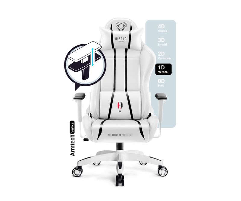 CARACTERISTICI PRINCIPALE: Cel mai bine vandut model de scaune Diablo Scaun mare si confortabil, potrivit pentru jucatorii inalti Forma care va sustine coloana vertebrala Perne confortabile, reglabile Umplutura moale din spuma HR Piele ecologica durabila, de inalta calitate Suporturi pentru brate reglabile in sus si in jos Capacitate maxima de incarcare de 160 kg SCAUN DE GAMING X-ONE 2.0 ALB-NEGRU: KING SIZE Daca sunteti in cautarea unui scaun de birou care sa va ofere siguranta si confortul necesar, incercati scaunul Diablo X-One 2.0. Acest model unic va sustine perfect figura si, datorita solutiilor inovatoare care ajuta la mentinerea pozitiei corecte a coloanei vertebrale, va contribui activ la formarea obiceiului de a sta in pozitia corecta. Marimea KING SIZE a fost proiectata pentru jucatorii cu inaltimea peste 175 cm. Vei obtine confort maxim pentru silueta ta.ADAPTAT LA NEVOILE DVS. Fotoliul KING size este ideal pentru persoanele inalte care au nevoie de mai mult sprijin pentru o functionare optima pe parcursul orelor lungi.Diablo X-One 2.0 KING garanteaza o reglare simpla si precisa in sus si in jos. Acest lucru va permite sa adaptati scaunul la inaltimea dvs. si la inaltimea biroului.Sistemul fiabil Tilttech™ Swing va permite sa va balansati in siguranta si relaxat.Scaunul de gaming va permite sa rotiti spatarul pana la 140° si sa il blocati in pozitia dorita. Obtineti confort la cel mai inalt nivel.DINAMIC SI EXPRESIV Emblemele expresive Diablo fac ca scaunul si tapiteria sa arate foarte originale si sa atraga toate privirile, iar silueta atletica va va oferi o experienta uimitoare in timpul fiecarui joc. Albul ca zapada al tapiteriei va revolutiona oricare incapere si va conferi caracter Diablo. TAPITERIE UNICA Stim perfect ca produsele dedicate gamerilor trebuie sa fie extrem de practice. De aceea piele ecologica alba HDS ™ este surprinzator de rezistenta la abraziune si extrem de usor de curatat. Firele puternice cu care a fost confectionata tapiteria asigura tensiunea corecta si durabilitatea suplimentara, datorita carora va arata excelent multi ani.UMPLERE CORESPUNZATOARE Cu Diablo X-One 2.0, invatarea de zi cu zi sau distractia la birou vor deveni extrem de confortabile si placute, deoarece intreaga silueta masiva a scaunului este plina de spuma moale HR. Relaxarea si confortul este garantat!TETIERA ERGONOMICA Pozitia corecta este mult mai mult decat simplul confort. Tetiera moale va stabili pozitionarea corecta a spatelui tau, ceea ce va preveni eficient formarea sau aprofundarea defectelor de postura.PERNA STREAM Cu o perna lombara inovatoare, veti sprijini frumos partea inferioara a coloanei vertebrale si va veti proteja de neplacerile ulterioare care va vor determina sa stati incorect la computer. Perna are forma ideala, umplutura sa este realizata din spuma HR de inalta calitate, flexibila si o puteti regla (de sus in jos). Aceasta combinatie va garanteaza confort si o pozitie ergonomica la computer.STABILIZAREA SILUETEI Cotierele verticale SoftTouch Armtech™ vor sustine si usura in mod activ umerii, antebratele si incheieturile mainii, pe masura ce le reglati exact dupa nevoile dvs. Setarea potrivita va ofera posibilitatea de a va mentine mainile intr-o pozitie ideala si naturala. Nu am uitat de suprafata spatarelor si am acoperit-o cu o spuma placuta, astfel incat acestea sa fie moi si chiar mai confortabile.BAZA FIABILA Siguranta necesara va fi asigurata de o baza solida pentru dumneavoastra, datorita careia scaunul nostru va fi pe deplin stabil si, chiar si in timpul jocului sau balansarii, va va proteja de cadere. Rotile durabile PFC™ 360 cu diametrul de 75 mm sunt echipate cu jante si, datorita stratului de cauciuc, protejeaza perfect podeaua impotriva zgarieturilor. Calitatea si durabilitatea sunt confirmate de certificatul de calitate BIFMA.