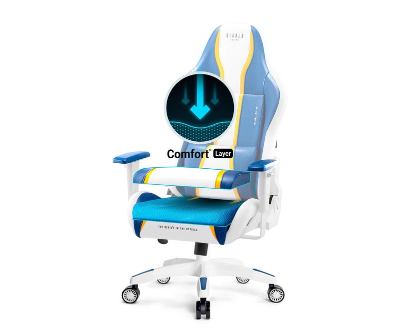 CARACTERISTICI PRINCIPALE: Cel mai bine vandut model de scaune Diablo Scaun mare si confortabil, potrivit pentru jucatorii inalti Forma pentru a va sustine coloana vertebrala Perne confortabile si reglabile Captuseala cu spuma HR moale Piele ecologica de inalta calitate, durabila Suporturi pentru brate reglabile in sus si in jos Capacitate maxima de incarcare de pana la 160 kg SCAUN GAMING X-ONE 2.0, MARIMEA AQUA BLUE / ALBASTRU: KING SIZE Scaunul pentru gaming X‑One 2.0, in dimensiunea XL - creat pentru jucatori, youtuberi si iubitorii dsignului original cu inaltime peste 175 cm! Siguranta- Liniste - Satisfactie. Scaunul nostru de gaming se remarca prin materialele de inalta calitate. Este timpul pentru ergonomie, confort si design marimea XL. ADAPTAT LA NEVOILE DVS. Fotoliul KING size este ideal pentru persoanele inalte care au nevoie de mai mult sprijin pentru o functionare optima pe parcursul orelor lungi.Diablo X‑One 2.0 KING garanteaza o reglare simpla si precisa in sus si in jos. Acest lucru va permite sa adaptati scaunul la inaltimea dvs. si la inaltimea biroului.Sistemul fiabil Tilttech™ Swing va permite sa va balansati in siguranta si relaxat.Scaunul de gaming va permite sa rotiti spatarul pana la 140° si sa il blocati in pozitia dorita. Obtineti confort la cel mai inalt nivel.DINAMIC SI EXPRESIV Priveste aceasta figura musculara infasurata in tapiterie din piele HD albastra si alba. Simti puterea ergonomiei, datorita careia veti combina confortul neobisnuit cu o pozitie pro-sanatate la masa de birou. Descoperiti designul magnetic al Diablo, care declanseaza fiorul emotiilor pozitive in fiecare detaliu. TAPITERIE UNICA Stim perfect ca produsele dedicate jucatorilor trebuie sa fie extrem de practice. De aceea piele ecologica albastra si alba HDS™ este surprinzator de rezistenta la abraziune si extrem de usor de curatat. Firele puternice cu care a fost confectionata tapiteria asigura tensiunea corecta si durabilitatea suplimentara, datorita carora va arata excelent multi ani.UMPLERE CORESPUNZATOARE Cu Diablo X‑One 2.0, invatarea de zi cu zi sau distractia la birou vor deveni extrem de confortabile si placute, deoarece intreaga silueta masiva a scaunului este plina de spuma moale HR. Relaxarea si confortul este garantat!TETIERA ERGONOMICA Pozitia corecta este mult mai mult decat simplul confort. Tetiera moale va stabili pozitionarea corecta a spatelui tau, ceea ce va preveni eficient formarea sau aprofundarea defectelor de postura.PERNA STREAM Cu o perna lombara inovatoare, veti sprijini frumos partea inferioara a coloanei vertebrale si va veti proteja de neplacerile ulterioare care va vor determina sa stati incorect la computer. Perna are forma ideala, umplutura sa este realizata din spuma HR de inalta calitate, flexibila si o puteti regla (de sus in jos). Aceasta combinatie va garanteaza confort si o pozitie ergonomica la computer.STABILIZAREA SILUETEI Cotierele verticale SoftTouch Armtech™ vor sustine si usura in mod activ umerii, antebratele si incheieturile mainii, pe masura ce le reglati exact dupa nevoile dvs. Setarea potrivita va ofera posibilitatea de a va mentine mainile intr-o pozitie ideala si naturala. Nu am uitat de suprafata spatarelor si am acoperit-o cu o spuma placuta, astfel incat acestea sa fie moi si chiar mai confortabile.BAZA FIABILA Siguranta necesara va fi asigurata de o baza solida pentru dumneavoastra, datorita careia scaunul nostru va fi pe deplin stabil si, chiar si in timpul jocului sau balansarii, va va proteja de cadere. Rotile durabile PFC™ 360 cu diametrul de 75 mm sunt echipate cu jante si, datorita stratului de cauciuc, protejeaza perfect podeaua impotriva zgarieturilor.