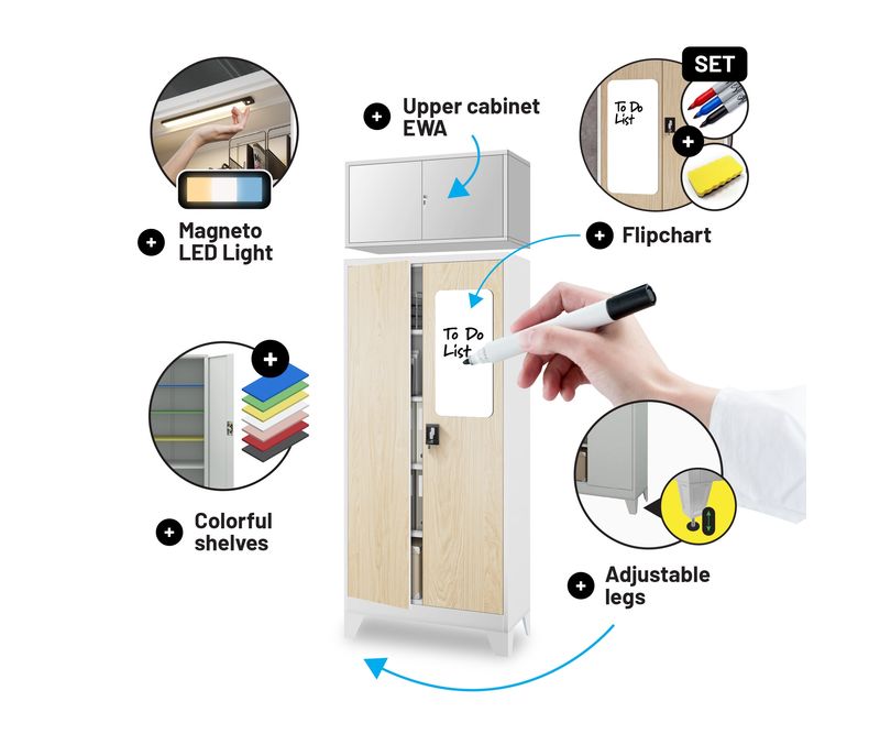 Dulap JAN H - otel, antracit, universal, pentru birou, scoala, atelier Exista multe modele de dulapuri pe piata, dar putine sunt la fel de versatile ca si dulapul metalic cu incuietoare JAN. Nu numai ca este excelent pentru depozitarea documentelor companiei, dar puteti pastra in el si medicamente sau tot felul de unelte in siguranta. Cele mai comune utilizari: dulap birou dulap medical dulap scule Companiile, scolile si birourile sunt principalii nostri clienti. Cu toate acestea, dulapurile cu incuietoare din otel JAN sunt din ce in ce mai mult folosite de persoanele fizice, care le aleg pentru a-si mobila interioarele datorita aspectului lor industrial minimalist si la moda. Dulap depozitare din metal JAN - caracteristici cheie ale produsului Dulapul de depozitare din metal JAN este un produs care nu numai ca este extrem de rezistent, dar este si conceput pentru a satisface toate cerintele utilizatorilor sai. Puteti adapta cu usurinta rafturile reglabile la nevoile D-voastra si puteti depozita in el tot ceea ce aveti nevoie. capacitate impresionanta (pana la 50 de dosare) 4 rafturi reglabile, fiecare cu o capacitate de incarcare de pana la 50 kg, reglabile in trepte de 25 mm. sistem de inchidere in 3 puncte (2 chei incluse) otel acoperit cu vopsea pulbere de 0,6 mm grosime, rezistent la deteriorari mecanice cu 2 usi dulapul nostru metalic a fost prevazut cu gauri pe partea din spate si laterala pentru a putea fi fixat pe un perete. Acest lucru va spori siguranta utilizarii zilnice. gaurile din partea superioara a dulapului fac posibila atasarea unei extensii. Specificatii - dulap metalic JAN inaltime 195 cm latime 90 cm adancime 40 cm greutate 41 kg culoare: alb (RAL 9003)-stejar sonoma Motivul pentru care merita? Garantie - Cele mai bune materiale si fara compromisuri in ceea ce priveste calitatea fabricatiei. Beneficiati de o garantie de calitate! Siguranta - Dulapul din otel JAN este certificat de Institutul National de Igiena. Acest lucru inseamna ca il puteti utiliza liber pentru a va indeplini scopurile. RODO 2018 - Dulapul de arhivare JAN a fost dezvoltat cu scopul RODO 2018 in minte si indeplineste toate cerintele asociate cu reglementarile. Important: Dulapul de birou metalic este livrat pe bucati si, prin urmare, necesita montare. Colectia JAN NOWAK Garantia celei mai inalte calitati este oferita de marca JAN NOWAK, unul dintre cei mai mari furnizori de dulapuri metalice din Europa. Nu uitati ca, apeland la serviciile unei unitati apreciate si dovedite, va puteti baza pe produse si servicii de inalta calitate.