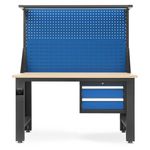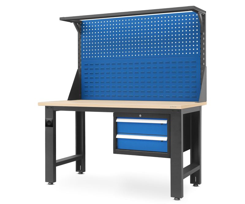 Banc de lucru LOGAN albastru - antracit Puteti echipa intreaga statie de lucru cu o singura piesa de mobilier de atelier? Banc de lucru LOGAN demonstreaza ca acest lucru este posibil datorita designului sau bine gandit. Blatul de lucru se bazeaza pe o constructie foarte rezistenta si stabila. In plus, s-a avut grija de spatiul pentru montarea iluminatului si depozitarea sculelor - doua sertare si un panou perforat. Astfel, banc de lucru LOGAN ofera suport complet pentru diversele sarcini efectuate in cadrul statiei de lucru. Fiabilitatea pe care va puteti baza! Un banc de lucru se confrunta cu multe provocari in timpul utilizarii. Merita sa optati pentru un model care se descurca excelent in orice conditii si care va va servi multi ani. Iata patru motive principale pentru care banc de lucru LOGAN va continua sa isi indeplineasca perfect rolul si peste o perioada mai indelungata: Picioare solide, realizate din profile de otel cu grosimea de 1,5 mm, confera stabilitate mesei, iar capacitatea sa de incarcare admisibila este de 600 kg. Constructie din otel acoperita cu vopsea pulbere pentru o rezistenta exceptionala la coroziune. Blatul gros si spatios din placa din lemn de placi aglomerate laminata, cu dimensiuni de 150 x 75 x 3 cm, garanteaza un confort ridicat atat pentru activitatile mai mici, cat si pentru cele mai mari. Cadrul asemanator unui birou va permite sa lucrati confortabil in pozitie asezata. Panou mare pentru scule Acest banc de lucru pentru atelier cu un panou pentru unelte reprezinta cea mai convenabila optiune pentru profesionisti si amatori. Pentru a creste si mai mult confortul, am creat doua zone de depozitare distincte. Pe organizatorul inferior, veti putea agata cutiile Ergobox, in timp ce partea superioara este destinata uneltelor: surubelnite, burghie, clesti, chei sau rigle. Extinderea bancului de lucru LOGAN cu sertare va rezolva problemele D-voastra cu sculele pierdute. Cand toate isi vor avea locul lor pe panoul perforat, pastrarea lucrurilor in ordine va deveni mult mai usoara. Depozitare protejata cu cheie Am echipat bancul de lucru LOGAN cu doua sertare practice. Constructia solida si ghidajele rezistente permit depozitarea in fiecare dintre ele a obiectelor cu o greutate totala de 45 kg. Este un loc excelent pentru echipamentele mai scumpe sau documentele importante. D-voastra decideti cine va avea acces la ele. Ca sa nu trebuiasca sa pierdeti mult timp cautand cheia potrivita, am proiectat o incuietoare care deschide doua sertare deodata. In set veti gasi doua chei. Un banc de lucru pentru cei pretentiosi! Bancul de lucru LOGAN va ofera un pachet de facilitati: Acoperire uniforma cu vopsea pulbere - contribuie nu numai la rezistenta ridicata, ci si la aspectul unic. Componentele din otel vopsite in antracit si vopsea albastra au un aspect foarte atractiv. Picioare reglabile - un spatiu de lucru corect nivelat va va permite sa va indepliniti sarcinile cu precizie. Capacitatea de reglare este o functionalitate valoroasa, mai ales in spatiile in care podeaua nu este intotdeauna perfect plana. Suport pentru lampa - constructia superioara permite montarea unei lampi. Un spatiu de lucru bine iluminat va contribui cu siguranta la confortul D-voastra (lampa trebuie achizitionata separat). Manere mari - va va fi mai usor sa deschideti sertarele, indiferent de situatie. Banc de lucru LOGAN cu sertare - informatii: Culoare: albastru-antracit RAL 7016 - RAL 5017 Inaltimea blatului mesei: 80 cm Latimea blatului de masa: 150 cm Adancimea blatului de masa: 75 cm Grosimea blatului: 3 cm Inaltime cu extensie: 170 cm Greutate: 86 kg Materialul blatului de masa: placa din lemn de placi aglomerate laminata Structura mesei: otel acoperit cu vopsea pulbere de 1,5/1,0/0,8 mm grosime Sarcina maxima: 600 kg Sarcina admisa a sertarului: 45 kg Filetul picioarelor reglabile: 9 mm Panou perforat: distanta dintre gauri 27 mm dimensiunile gaurilor: 10 mm x 10 mm Componentele bancului de lucru LOGAN vor fi livrate in trei pachete.