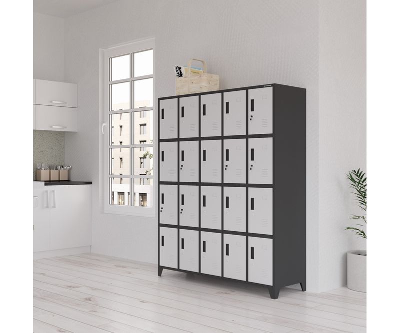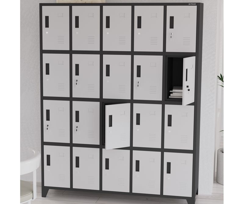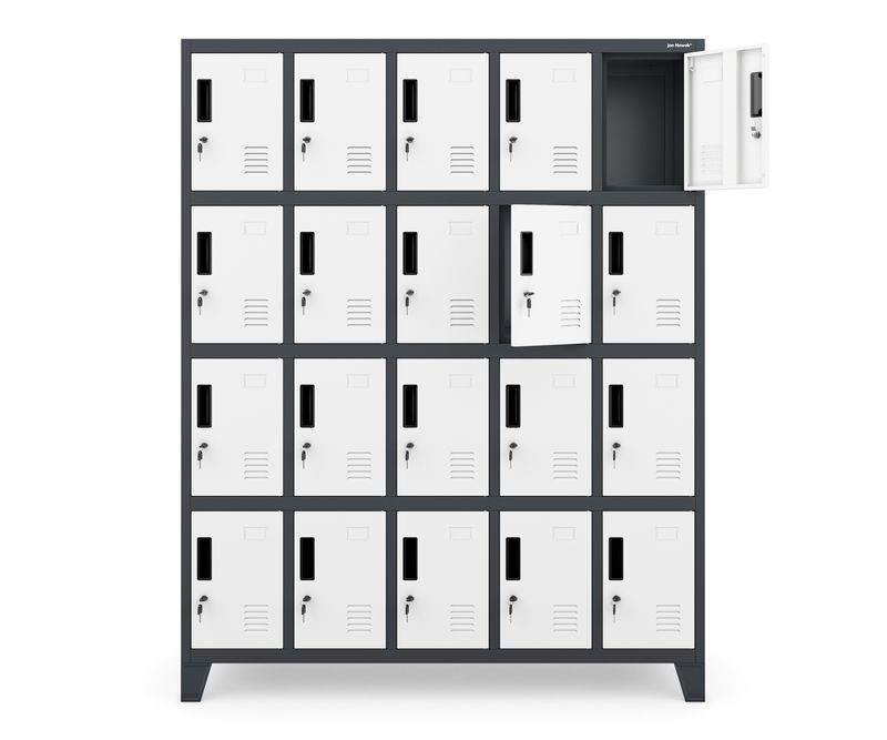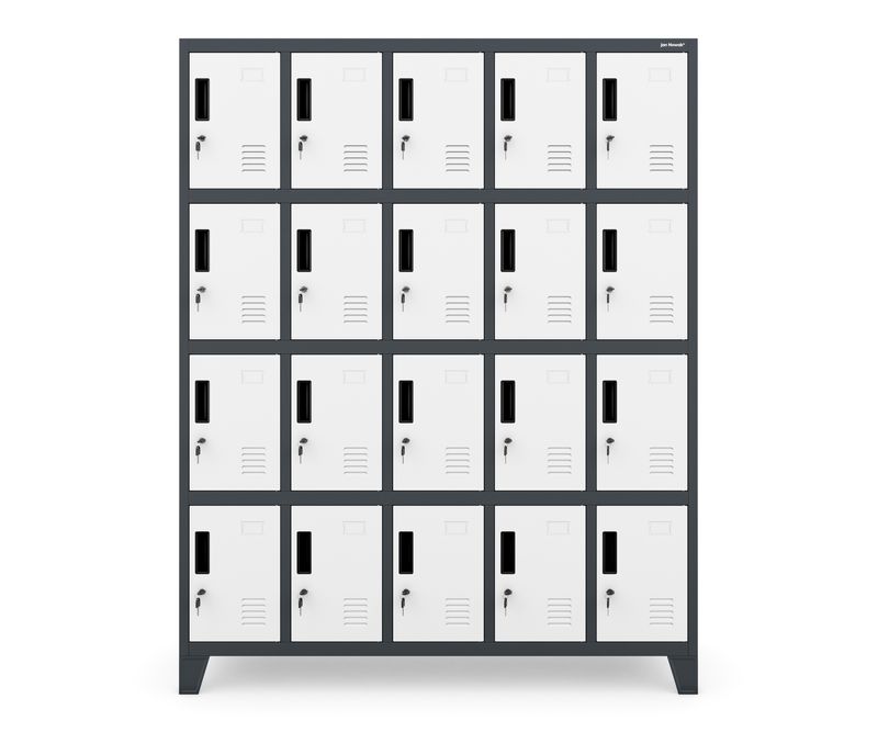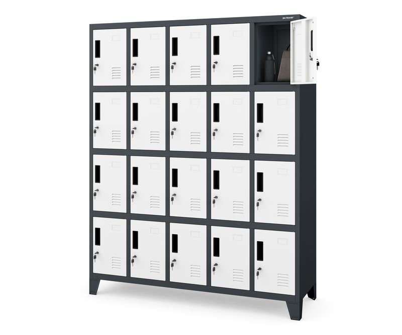 Dulap metalic ROBERT alb antracit Acest dulap metalic ROBERT va ofera mari posibilitati. Cadrul are o latime de 136 cm, o inaltime de 172 cm si o adancime de 45 cm, am amplasat pana la 20 de usi cu dimensiuni egale. Aceasta este o solutie foarte convenabila care va va permite sa va depozitati in siguranta bunurile personale, mai ales in locurile unde sunt multi oameni. Dulap metalic ROBERT - ideal pentru depozitare: mancarea la locul de munca, carti si caiete pentru scoala, articole personale folosite la sala de sport sau la clubul de fitness, pantofi la bowling, cumparaturi la mall. Dulap metalic Pentru dulapul metalic ROBERT folosim tabla din otel cu grosimea de 0,6 mm. Structura este protejata impotriva coroziunii si a deteriorarilor mecanice printr-un strat de vopsea pulbere aplicat uniform. Vopsirea protejeaza dulapul impotriva factorilor daunatori, dar ii confera si un aspect atractiv. Corpul antracit si usile albe au un aspect original si vor fi cu siguranta o completare interesanta a interiorului D-voastra. Functionalitate incorporata in 20 de compartimente de depozitare Exista loc pentru orice - dulapurile de 36 x 24 x 45 cm sunt spatioase si sunt potrivite pentru pantofi, rucsac, cumparaturi, gustari sau casca. Conceput ingenios - usile dulapurilor au orificii de ventilatie pentru asigurarea circulatiei adecvate a aerului si a umiditatii. Pentru o utilizare sigura - fronturile sunt intarite si asigurate de un mecanism solid de blocare intr-un singur punct. Primiti doua chei pentru fiecare. Evitati confuzia - veti gasi spatii destinate pentru a va nota numele ceea ce faciliteaza atribuirea dulapurilor angajatilor sau elevilor. Mentineti ordinea mai usor - dulapul metalic ROBERT are optiunea de a fi montate picioare. Acest lucru va va oferi un acces mai convenabil la fiecare dulap, dar si pastrarea podelei in stare perfecta. Montaj - este usor! Solutiile Jan Nowak sunt create in asa fel incat montarea lor sa fie simpla si sa nu necesite mult timp. Partea frontala a dulapului impreuna cu usile vor veni la D-voastra intr-o singura bucata, ceea ce face ca intregul proces sa fie semnificativ mai usor si mai rapid. In ciuda celor 20 de usi, puteti asambla cu usurinta dulapul ROBERT in aproximativ 30 de minute. Am pregatit instructiuni clare in format tiparit pe hartie, pe care il veti gasi in pachet, precum si un filmulet video pe site. Dulapul metalic ROBERT - date tehnice: Culoare: alb antracit RAL 7016 - RAL 9003 Inaltime: 172 cm Latime: 136 cm Adancime: 45 cm Greutate: 74 kg Garantie de calitate Dimensiunea unui singur dulap: Inaltime: 36 cm Latime: 24 cm Adancime: 45 cm