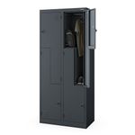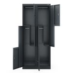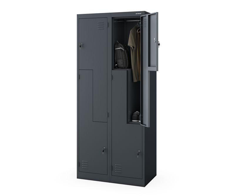 Jan Nowak Dulap haine metalic tip L JULIA antracit Modelul JULIA este un dulap compact din metal cu patru locuri de depozitare spatioase si functionale. Compartimentele de depozitare in forma de L inseamna ca inauntru puteti sa va potriviti jacheta, pantofii, rucsacul sau geanta fara nici cea mai mica problema. Datorita depozitarii sale practice si sigure, a constructiei robuste si a culorilor originale, dulapul metalic JULIA isi gaseste o multitudine de utilizari. Cel mai adesea este ales pentru vestiarele de la piscine, cluburi sportive, companii, locuri de munca sau scoli. Dulap haine cu aspect elegant Dulapul haine metalic JULIA in culoare antracit arata foarte atractiv. Este o alegere excelenta, mai ales daca va intereseaza mobilierul elegant, dar si rezistent, realizat din metal. Elementele structurale ale vestiarului sunt realizate din otel rezistent (grosime de 0,6 mm), pe care l-am protejat cu vopsea pulbere. Acoperirea protejeaza impotriva ruginii, astfel incat modelul JULIA ramane in stare perfecta chiar si intr-o camera cu umiditate crescuta. Functionalitate si siguranta Forma unica a compartimentelor de depozitare face posibila separarea a patru spatii practice, care au o inaltime de 114 cm in cel mai mare punct al lor. Datorita acestui design, eliminati riscul de a sifona hainele lungi. Dulapul haine JULIA va va oferi siguranta ca obiectele lasate in interior sunt in siguranta si sunt depozitate in conditii adecvate. Fiecare dulap este complet functional si are: o incuietoare cu cheie - o incuietoare prevazuta cu un singur punct de blocare, o bara de haine usor de depozitat, orificii pentru o ventilatie adecvata, usi cu intaritura pentru o si mai mare senzatie de siguranta, o cheie principala si una de rezerva. Dulap haine JULIA usor de montat Timpul D-voastra este extrem de pretios, motiv pentru care am facut ca montarea dulapului metalic JULIA sa fie cat se poate de simpla. Am descris toti pasii in instructiunile pe hartie incluse in pachet, precum si un videoclip care ilustreaza asamblarea. Il puteti gasi pe site-ul nostru. Dulap JULIA tip L - detalii: Culoare: RAL 7016 antracit Inaltime: 185 cm Latime: 80 cm Adancime: 45 cm Greutate: 44 kg Capacitatea maxima de incarcare a rafturilor: 50 kg Garantie de calitate