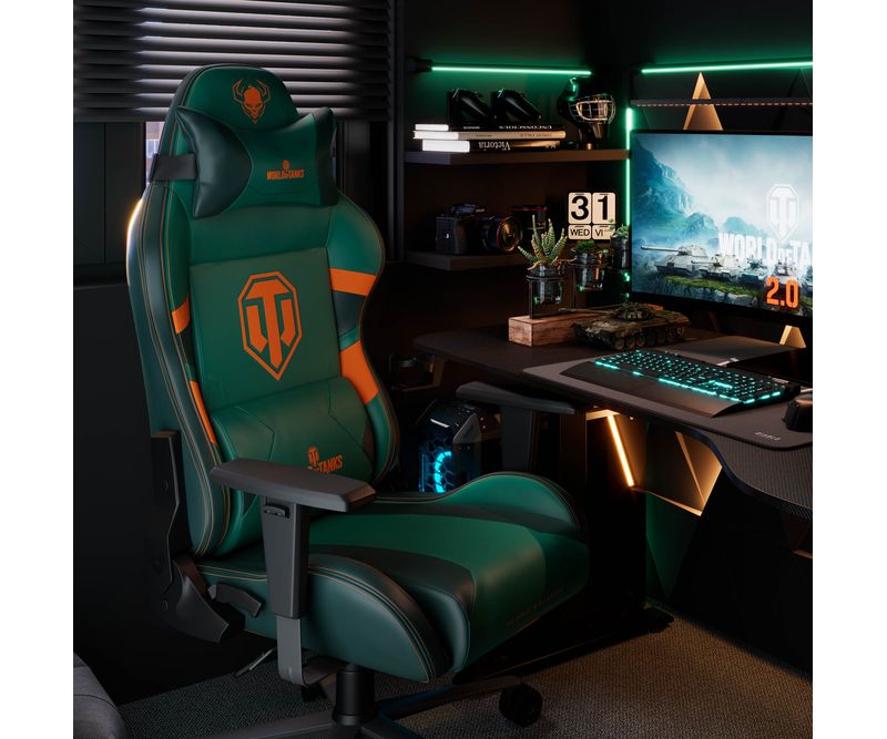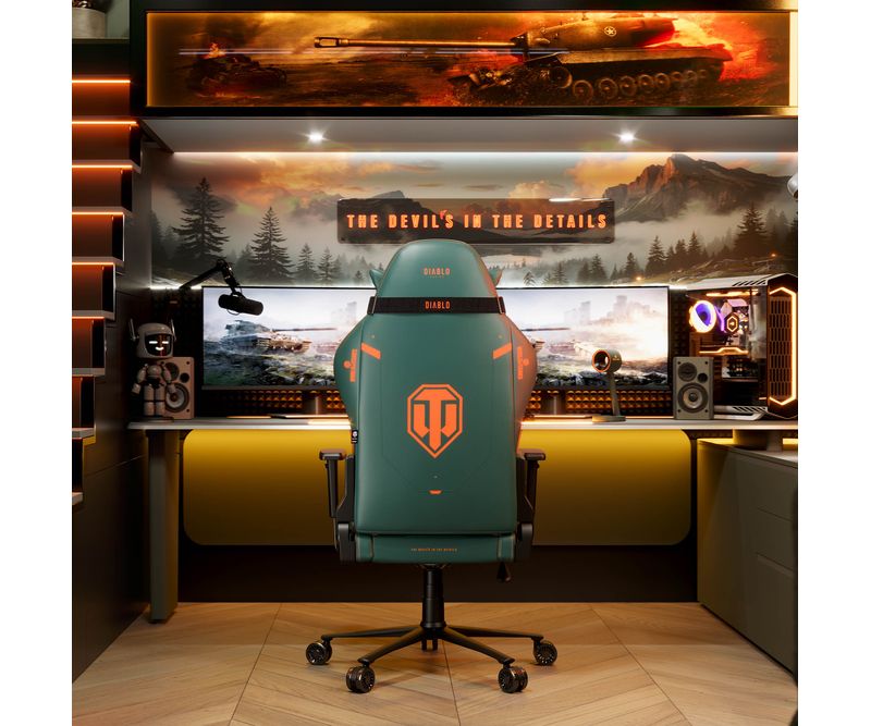 CARACTERISTICI PRINCIPALE: Scaun de gaming cu licenta World of Tanks Piele ecologica moale si foarte rezistenta Strat suplimentar de captuseala in scaun Perne de sustinere a posturii Baza metalica Roti din cauciuc manevrabile Capacitate maxima de incarcare 140 kg SCAUN DE GAMING WOT DIABLO X-ONE 2.0, WORLD OF TANKS Sute de tancuri, nenumarate ore dedicate perfectionarii tacticilor si strategiilor, emotii unice la fiecare partida. Nu e de mirare ca World of Tanks a reunit milioane de jucatori din intreaga lume. Daca te numeri printre cei pentru care renumitul MMO se afla in fruntea listei, e momentul sa iesi in evidenta cu un scaun de gaming unic, sub licenta World of Tanks. Afla mai multe despre neobisnuita colaborare dintre Diablo Chairs si WOT, in care, confortul absolut se combina cu stilul caracteristic jocului. EMBLEME UNICE Pentru cei mai infocati fani ai jocului, aspectul scaunului Diablo x WOT este un vis devenit realitate. In primul rand, atrage atentia prin logoul mare, brodat, World of Tanks. Cu siguranta nu-l va rata nimeni, deoarece e aplicat atat pe fata, cat si pe spatele spatarului. Cusaturile solide asigura o intindere perfecta a materialului si, in acelasi timp, sunt un element estetic, care se armonizeaza perfect cu broderiile si cu cromatica verde. CAMUFLAJ DE EXCEPTIE Meciurile pot fi lungi si dificile si, de aceea, la acest model am optat pentru pielea ecologica HDS™ ComfortTouch, care este moale si deosebit de rezistenta. Scaunul de gaming WOT va rezista fara probleme la toate socurile zilnice si va continua sa impresioneze prin aspectul sau impecabil. Fara indoiala, acest model unic va deveni elementul central al camerei tale de gaming si va atrage toate privirile atunci cand vei face streaming. NUMARUL MAXIM DE PUNCTE DE CONFORT Constructia preluata de la statiile de gaming si umplutura scaunului de gaming sunt cele mai importante caracteristici, influentand nivelul de confort. Scaunul Diablo x WOT este umplut cu un strat gros de spuma elastica HR. Nivelul de confort este crescut, deoarece am introdus un strat suplimentar Dual Layer™. Datorita acestuia, perna scaunului are o grosime de pana la 12 cm. SUSTINEREA PE CARE POTI CONTA Tetiera si perna lombara ofera un suport stabil pentru trunchi si ajuta la mentinerea unei pozitii corecte. Acestea sunt fabricate din spuma flexibila HR Memory, care se adapteaza perfect la corpul dumneavoastra. Cu aceste elemente veti avea intotdeauna cel mai bun suport. PORNESTE IN RECUNOASTERE Inainte de a te aseza confortabil in noul tau scaun, trebuie sa afli ce capabilitati are, la fel ca atunci cand alegi cel mai bun tanc pentru urmatoarea partida. Afla care sunt capabilitatile Scaunului de gaming Diablo x World of Tanks: Tilttech™ Lift – un sistem de precizie, pentru ridicarea si coborarea scaunului, care te va ajuta sa reglezi perna la inaltimea potrivitaTilttech™ Gear – mecanismul care iti permite sa gasesti pozitia preferata. Scaunul are de a fi blocat in orice moment.Tilttech™ Swing – functia de balansare activa face ca spatarul sa reactioneze la toate miscarile tale si sa amortizeze fara probleme orice emotie. Bucura-te de o victorie sau remonteaza-te dupa o infrangere intr-un confort absolut. OCHESTE SI TRAGE! Controlul deplin si precizia sunt cai sigure spre obtinerea unor rezultate si mai bune. Scaunul de gaming World of Tanks asigura stabilitatea coatelor si a antebratelor, atat de necesara atunci cand ai in vizor vulnerabilitatile oponentului. Cotierele Armtech™ Vertical SoftTouch permit reglarea cotierelor pe inaltime si iti ofera un confort maxim, deoarece au un strat exterior deosebit de moale. SUCCES TOTAL IN TIMPUL MANEVRELOR Scaunul de gaming WOT se deplaseaza lin si silentios pe orice suprafata. Acest lucru se datoreaza rotitelor mobile PFC™ 360. Rotitele sunt realizate din cauciuc, pentru ca atunci cand iti petreci o mare parte din zi in fata calculatorului, pardoseala ta sa ramana in continuare impecabila. UN SCAUN DE GAMING FARA VULNERABILITATI Scaunul de gaming Diablo x WOT are o baza metalica marita. Aceasta, in combinatie cu mecanismul de ridicare, sustine o greutate de pana la 140 kg. Mecanismul incorporat Air Damper™ System asigura o excelenta amortizare. De aceea, scaunul de gaming este stabil si deosebit de elegant.