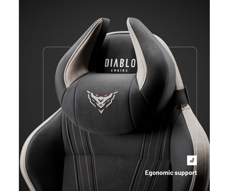 Tetiera in forma de coarne este semnul distinctiv al scaunului Diablo X-Horn, dar si un suport ergonomic pentru cap. Coloana D-voastra vertebrala va va multumi cu siguranta pentru perna lombara. Important este sa ii reglati pozitia si ea se va ajusta in functie de pozitia D-voastra, deoarece este fabricata din spuma cu memorie. Maximizati confortul si mentineti o pozitie favorabila sanatatii fara niciun efort!BAZA CONFORTULUI SE AFLA IN INTERIOR
