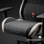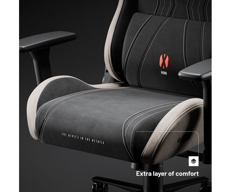 Scaunul de gaming din material textil Diablo X-Horn este complet umplut cu spuma elastica HR. Pentru a atinge un confort de neegalat, am adaugat un strat suplimentar din acest material elastic in sezut. Astfel, Diablo X-Horn ofera un confort extraordinar, indiferent daca urmeaza o scurta sesiune de joc sau un maraton de gaming.DETALIILE CARE FAC O DIFERENTA SEMNIFICATIVA