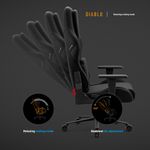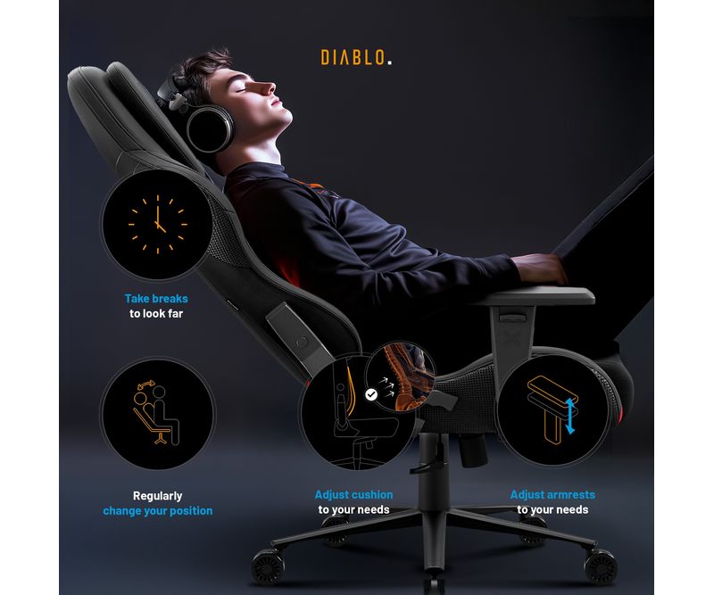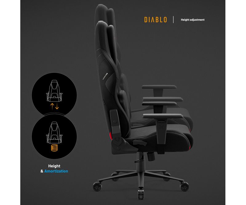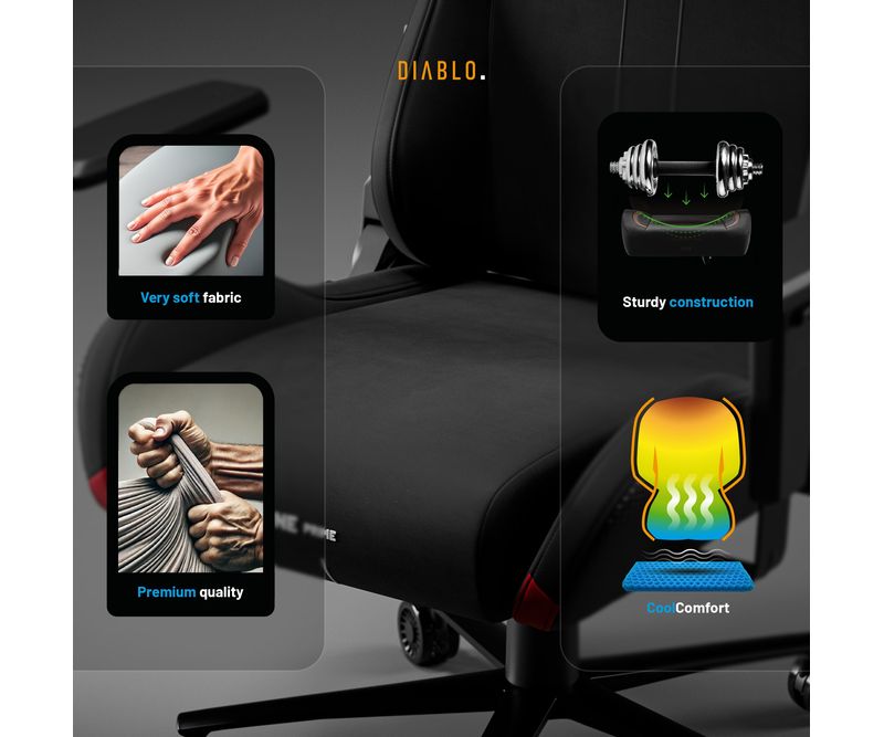 Upgrade-uri Xtreme Prime Series Material de 3 ori mai durabil Sezut cu efect de racorire Tetiera magnetica din spuma Memory Perna lombara moderna Baza solida din metal Principalele caracteristicile ale scaunului: Material respirabil pentru confort 365 de zile pe an Perne ergonomice cu ajustare precisa Suporturi de brate reglabile pe inaltime Roti silentioase cu strat de cauciuc Capacitate maxima: 140 kg Scaun Gaming negru Diablo X.One Prime, Normal Size, Burned Black Lumea evolueaza, iar asteptarile D-voastra la fel, de aceea a fost creata seria Xtreme Prime. Designul modern, detaliile finisate impecabil si upgrade-urile ofera un confort si o satisfactie remarcabila. Descoperiti noua versiune imbunatatita a acestui model clasic legendar. Perspectiva moderna asupra scaunelor de gaming Scaunul de gaming X One Prime negru combina stilul dinamic al gaming-ului cu un design de ultima generatie. Forma ergonomica a pernelor si calitatea premium a detaliilor ofera un ansamblu armonios. Perfect integrat in spatiul D-voastra de lucru unde adauga un plus de stil.Scaun de gaming cu efect de racorire Seria Xtreme Prime atinge apogeul atat in design, cat si in functionalitate. Sezutul scaunului, realizat din spuma elastica HR, beneficiaza de tehnologia inovatoare CoolComfort™. Va asezati la calculator si simtiti efectul de racorire dupa doar o clipa. Placerea de a juca in toate conditiile? Suna ca un plan perfect!Material mai rezistent ca niciodata De acum, nu mai trebuie sa alegeti intre avantajele pielii ecologice si ale materialului textil, deoarece scaunul de gaming X.One Prime este creat dintr-un material ideal. Chiar si cea mai intensa utilizare nu va lasa urme asupra lui. Materialul GentlePro™ permite circulatia aerului, fiind de 3 ori mai rezistent, extrem de placut la atingere si usor de intretinut.Scaunul de gaming ergonomic X.One Prime Scaunul de gaming X.One negru ofera un suport ergonomic de exceptie, asigurandu-va confortul optim. Setarile precise si spuma Memory ofera suport optim pentru corp, iar tetierele magnetice asigura o stabilitate remarcabila. Perna lombara se ajusteaza usor datorita curelei integrate in structura scaunului. Diablo Chairs se remarca prin solutii ingenioase si estetice care imbunatatesc confortul si functionalitatea.Intotdeauna ajustat nevoilor D-voastra Jucatorii au indragit scaunele Diablo Chairs pentru libertatea de a sta exact in pozitia preferata. Mecanismele de incredere ofera flexibilitatea de care aveti nevoie in timpul sesiunilor prelungite de gaming.Ajustarea inaltimii este esentiala pentru o pozitie de sedere ergonomica, iar cu mecanismul robust Tilttech™ Lift o puteti realiza usor si rapid.Simtiti nevoia sa stati drept sau intr-o pozitie semi-inclinata. Cu Tilttech™ Gear veti obtine 100% satisfactie. Blocati spatarul in orice pozitie de la 90° la 140°.In plus, functia Tilttech™ Swing adauga o miscare benefica in rutina zilnica, oferindu-va posibilitatea de a va balansa usor, indiferent daca va jucati sau va relaxati.Stabilitate la superlativ Cu scaunul de gaming X.One Prime, fiecare parte a corpului D-voastra beneficiaza de suport optim. Cotierele Armtech™ Vertical SoftTouch, cu reglare pe inaltime si finisaj moale, ofera confort bratelor, umerilor si incheieturilor. Este un punct de rezistenta si stabilitate deosebit in lista avantajelor scaunului Diablo X.One.Roti silentioase cu strat cauciucat Scaunul de gaming negru X.One Prime aduce confort pana la nivelul rotilor. Modelul PFC™ 360 asigura o miscare lina si silentioasa. Aceasta se datoreaza nu doar calitatii exceptionale, ci si stratului exterior cauciucat, care protejeaza podeaua impotriva zgarieturilor. Nu aveti chef sa va ridicati? Cu X.One Prime, va puteti deplasa confortabil prin intreaga incapere.Calitate evidentiata prin soliditate Fata de varianta sa clasica, X.One Prime se deosebeste prin baza. Baza metalica nu doar ca ofera un aspect modern, ci asigura si o durabilitate excelenta. Nu e de mirare ca, alaturi de cilindrul de clasa 4, atinge o capacitate maxima de 140 kg. In plus, sistemul Air Damper™ se ocupa de o amortizare exceptionala. *Materialul GentlePro™ a obtinut un rezultat remarcabil (90.000 de cicluri) in testele de abraziune (testul Martindale), care este de 3 ori mai bun decat rezultatele obtinute de tesaturile standard.