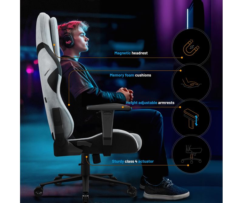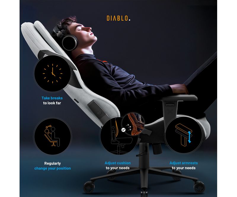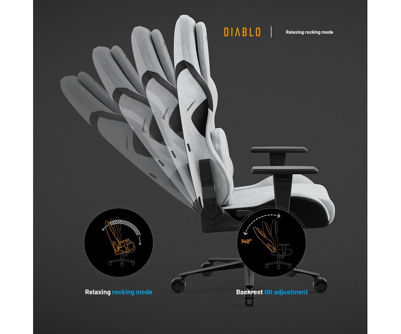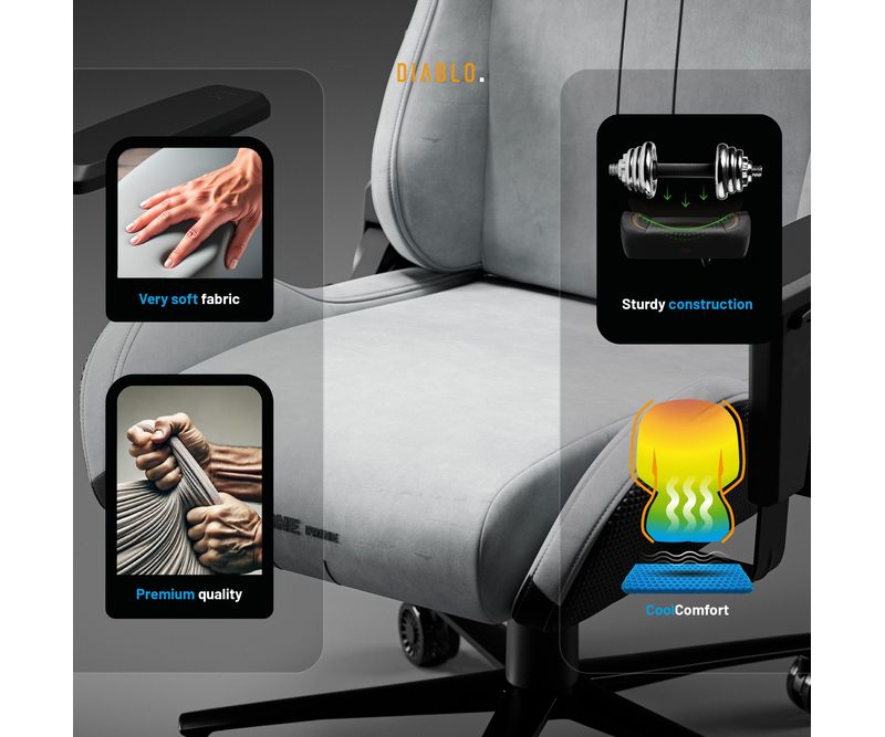 Upgrade-uri Xtreme Prime Series Material de 3 ori mai durabil Sezut cu efect de racorire Tetiera magnetica din spuma Memory Perna lombara moderna Baza solida din metal Principalele caracteristicile ale scaunului: Material respirabil pentru confort 365 de zile pe an Perne ergonomice cu ajustare precisa Suporturi de brate reglabile pe inaltime Roti silentioase cu strat de cauciuc Capacitate maxima: 140 kg Scaun Gaming gri Diablo X.One Prime, Normal Size, Nightwolf Moon Lumea evolueaza, iar asteptarile D-voastra la fel, de aceea a fost creata seria Xtreme Prime. Designul modern, detaliile finisate impecabil si upgrade-urile ofera un confort si o satisfactie remarcabila. Descoperiti noua versiune imbunatatita a acestui model clasic legendar. Perspectiva moderna asupra scaunelor de gaming Scaunul de gaming X One Prime gri combina stilul dinamic al gaming-ului cu un design de ultima generatie. Forma ergonomica a pernelor si calitatea premium a detaliilor ofera un ansamblu armonios. Perfect integrat in spatiul D-voastra de lucru unde adauga un plus de stil.Scaun de gaming cu efect de racorire Seria Xtreme Prime atinge apogeul atat in design, cat si in functionalitate. Sezutul scaunului, realizat din spuma elastica HR, beneficiaza de tehnologia inovatoare CoolComfort™. Va asezati la calculator si simtiti efectul de racorire dupa doar o clipa. Placerea de a juca in toate conditiile? Suna ca un plan perfect!Material mai rezistent ca niciodata De acum, nu mai trebuie sa alegeti intre avantajele pielii ecologice si ale materialului textil, deoarece scaunul de gaming X.One Prime este creat dintr-un material ideal. Chiar si cea mai intensa utilizare nu va lasa urme asupra lui. Materialul GentlePro™ permite circulatia aerului, fiind de 3 ori mai rezistent, extrem de placut la atingere si usor de intretinut.Scaunul de gaming ergonomic X.One Prime Scaunul de gaming X.One gri ofera un suport ergonomic de exceptie, asigurandu-va confortul optim. Setarile precise si spuma Memory ofera suport optim pentru corp, iar tetierele magnetice asigura o stabilitate remarcabila. Perna lombara se ajusteaza usor datorita curelei integrate in structura scaunului. Diablo Chairs se remarca prin solutii ingenioase si estetice care imbunatatesc confortul si functionalitatea.Intotdeauna ajustat nevoilor D-voastra Jucatorii au indragit scaunele Diablo Chairs pentru libertatea de a sta exact in pozitia preferata. Mecanismele de incredere ofera flexibilitatea de care aveti nevoie in timpul sesiunilor prelungite de gaming.Ajustarea inaltimii este esentiala pentru o pozitie de sedere ergonomica, iar cu mecanismul robust Tilttech™ Lift o puteti realiza usor si rapid.Simtiti nevoia sa stati drept sau intr-o pozitie semi-inclinata. Cu Tilttech™ Gear veti obtine 100% satisfactie. Blocati spatarul in orice pozitie de la 90° la 140°.In plus, functia Tilttech™ Swing adauga o miscare benefica in rutina zilnica, oferindu-va posibilitatea de a va balansa usor, indiferent daca va jucati sau va relaxati.Stabilitate la superlativ Cu scaunul de gaming X.One Prime, fiecare parte a corpului D-voastra beneficiaza de suport optim. Cotierele Armtech™ Vertical SoftTouch, cu reglare pe inaltime si finisaj moale, ofera confort bratelor, umerilor si incheieturilor. Este un punct de rezistenta si stabilitate deosebit in lista avantajelor scaunului Diablo X.One.Roti silentioase cu strat cauciucat Scaunul de gaming gri X.One Prime aduce confort pana la nivelul rotilor. Modelul PFC™ 360 asigura o miscare lina si silentioasa. Aceasta se datoreaza nu doar calitatii exceptionale, ci si stratului exterior cauciucat, care protejeaza podeaua impotriva zgarieturilor. Nu aveti chef sa va ridicati? Cu X.One Prime, va puteti deplasa confortabil prin intreaga incapere.Calitate evidentiata prin soliditate Fata de varianta sa clasica, X.One Prime se deosebeste prin baza. Baza metalica nu doar ca ofera un aspect modern, ci asigura si o durabilitate excelenta. Nu e de mirare ca, alaturi de cilindrul de clasa 4, atinge o capacitate maxima de 140 kg. In plus, sistemul Air Damper™ se ocupa de o amortizare exceptionala. *Materialul GentlePro™ a obtinut un rezultat remarcabil (90.000 de cicluri) in testele de abraziune (testul Martindale), care este de 3 ori mai bun decat rezultatele obtinute de tesaturile standard.