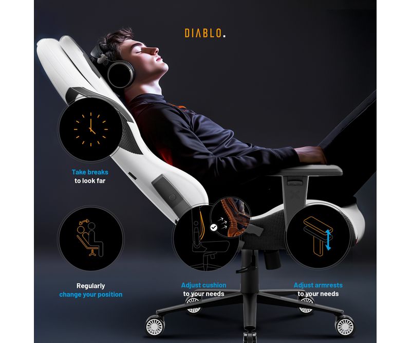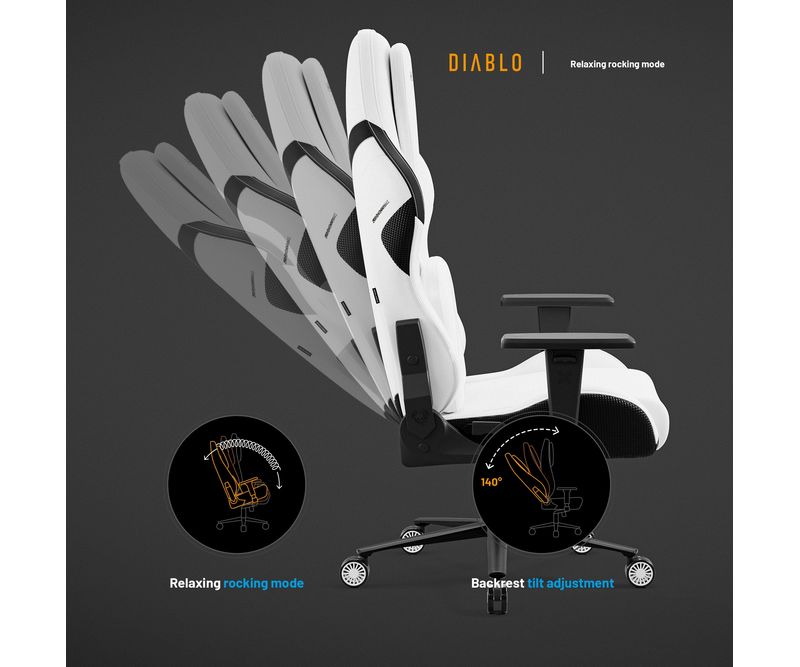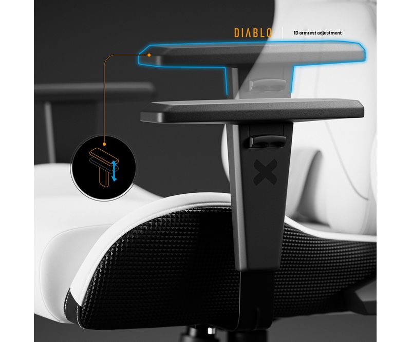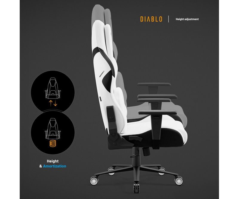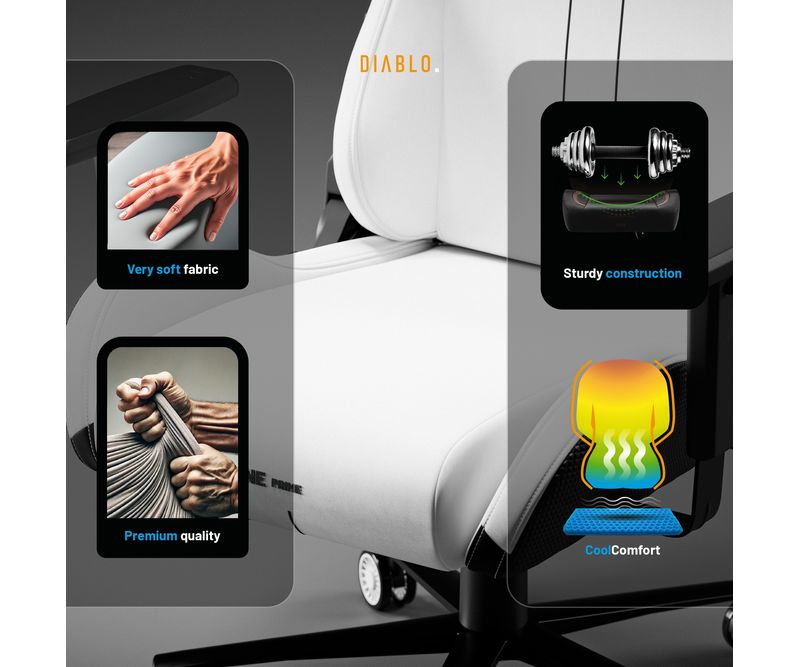 Upgrade-uri Xtreme Prime Series Material de 3 ori mai durabil Sezut cu efect de racorire Tetiera magnetica din spuma Memory Perna lombara moderna Baza solida din metal Principalele caracteristicile ale scaunului: Material respirabil pentru confort 365 de zile pe an Perne ergonomice cu ajustare precisa Suporturi de brate reglabile pe inaltime Roti silentioase cu strat de cauciuc Capacitate maxima: 140 kg Scaun Gaming alb Diablo X.One Prime, Normal Size, Ghosted White Lumea evolueaza, iar asteptarile D-voastra la fel, de aceea a fost creata seria Xtreme Prime. Designul modern, detaliile finisate impecabil si upgrade-urile ofera un confort si o satisfactie remarcabila. Descoperiti noua versiune imbunatatita a acestui model clasic legendar. Perspectiva moderna asupra scaunelor de gaming Scaunul de gaming X One Prime alb combina stilul dinamic al gaming-ului cu un design de ultima generatie. Forma ergonomica a pernelor si calitatea premium a detaliilor ofera un ansamblu armonios. Perfect integrat in spatiul D-voastra de lucru unde adauga un plus de stil.Scaun de gaming cu efect de racorire Seria Xtreme Prime atinge apogeul atat in design, cat si in functionalitate. Sezutul scaunului, realizat din spuma elastica HR, beneficiaza de tehnologia inovatoare CoolComfort™. Va asezati la calculator si simtiti efectul de racorire dupa doar o clipa. Placerea de a juca in toate conditiile? Suna ca un plan perfect!Material mai rezistent ca niciodata De acum, nu mai trebuie sa alegeti intre avantajele pielii ecologice si ale materialului textil, deoarece scaunul de gaming X.One Prime este creat dintr-un material ideal. Chiar si cea mai intensa utilizare nu va lasa urme asupra lui. Materialul GentlePro™ permite circulatia aerului, fiind de 3 ori mai rezistent, extrem de placut la atingere si usor de intretinut.Scaunul de gaming ergonomic X.One Prime Scaunul de gaming X.One alb ofera un suport ergonomic de exceptie, asigurandu-va confortul optim. Setarile precise si spuma Memory ofera suport optim pentru corp, iar tetierele magnetice asigura o stabilitate remarcabila. Perna lombara se ajusteaza usor datorita curelei integrate in structura scaunului. Diablo Chairs se remarca prin solutii ingenioase si estetice care imbunatatesc confortul si functionalitatea.Intotdeauna ajustat nevoilor D-voastra Jucatorii au indragit scaunele Diablo Chairs pentru libertatea de a sta exact in pozitia preferata. Mecanismele de incredere ofera flexibilitatea de care aveti nevoie in timpul sesiunilor prelungite de gaming.Ajustarea inaltimii este esentiala pentru o pozitie de sedere ergonomica, iar cu mecanismul robust Tilttech™ Lift o puteti realiza usor si rapid.Simtiti nevoia sa stati drept sau intr-o pozitie semi-inclinata. Cu Tilttech™ Gear veti obtine 100% satisfactie. Blocati spatarul in orice pozitie de la 90° la 140°.In plus, functia Tilttech™ Swing adauga o miscare benefica in rutina zilnica, oferindu-va posibilitatea de a va balansa usor, indiferent daca va jucati sau va relaxati.Stabilitate la superlativ Cu scaunul de gaming X.One Prime, fiecare parte a corpului D-voastra beneficiaza de suport optim. Cotierele Armtech™ Vertical SoftTouch, cu reglare pe inaltime si finisaj moale, ofera confort bratelor, umerilor si incheieturilor. Este un punct de rezistenta si stabilitate deosebit in lista avantajelor scaunului Diablo X.One.Roti silentioase cu strat cauciucat Scaunul de gaming alb X.One Prime aduce confort pana la nivelul rotilor. Modelul PFC™ 360 asigura o miscare lina si silentioasa. Aceasta se datoreaza nu doar calitatii exceptionale, ci si stratului exterior cauciucat, care protejeaza podeaua impotriva zgarieturilor. Nu aveti chef sa va ridicati? Cu X.One Prime, va puteti deplasa confortabil prin intreaga incapere.Calitate evidentiata prin soliditate Fata de varianta sa clasica, X.One Prime se deosebeste prin baza. Baza metalica nu doar ca ofera un aspect modern, ci asigura si o durabilitate excelenta. Nu e de mirare ca, alaturi de cilindrul de clasa 4, atinge o capacitate maxima de 140 kg. In plus, sistemul Air Damper™ se ocupa de o amortizare exceptionala. *Materialul GentlePro™ a obtinut un rezultat remarcabil (90.000 de cicluri) in testele de abraziune (testul Martindale), care este de 3 ori mai bun decat rezultatele obtinute de tesaturile standard.
