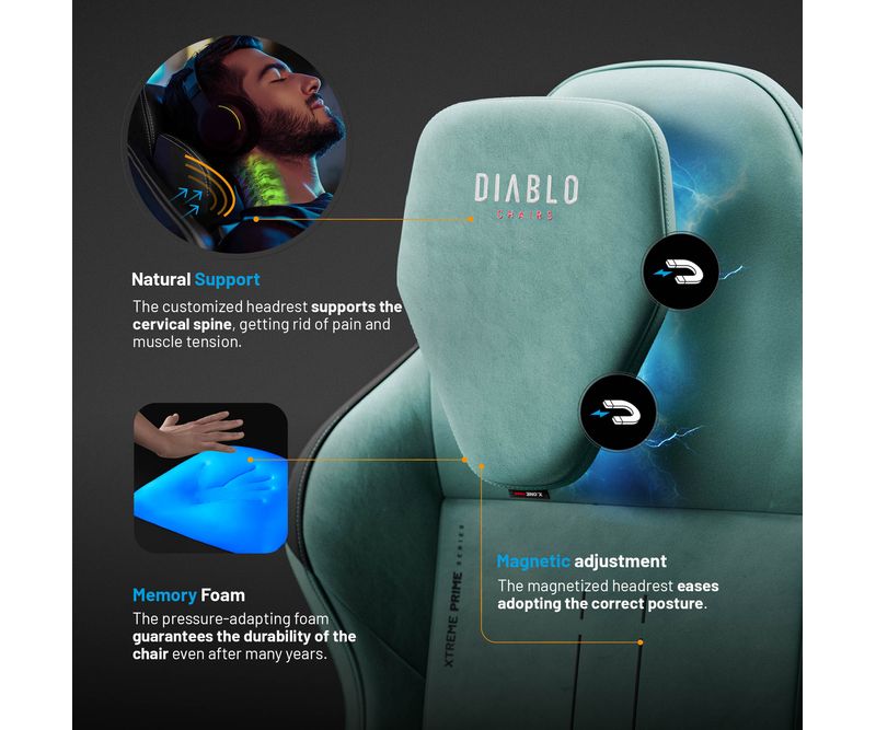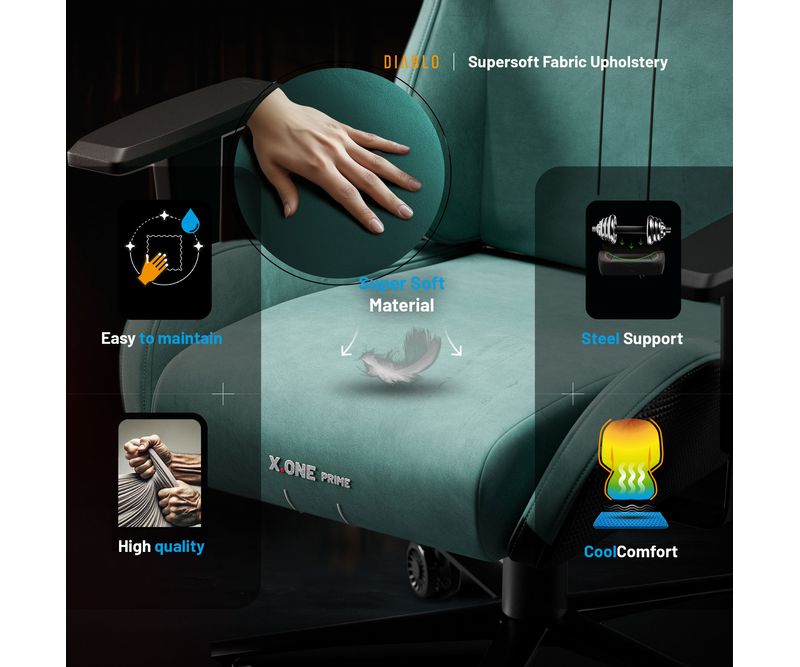Diablo X.One Prime a fost creat pentru cei mai exigenti gameri, care stiu exact ce vor. Nimic nu este intamplator – fiecare element are grija de confortul tau maxim. Dar ergonomia nu e totul! Scaunul de la Diablo Chairs impresioneaza printr-un design uluitor. Silueta dinamica si pernele caracteristice se potrivesc perfect cu nuanta moderna Mystic Mint. Acest scaun menta este alegerea ideala pentru oricine vrea sa evite monotonia si prefera culorile neobisnuite.Tehnologie de racire placuta