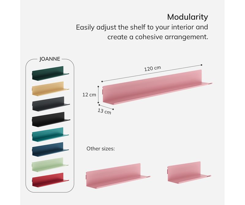 #html-body [data-pb-style=DLMMV7C]{justify-content:flex-start;display:flex;flex-direction:column;background-position:left top;background-size:cover;background-repeat:no-repeat;background-attachment:scroll}#html-body [data-pb-style=Q9NLWYO]{display:none}#html-body [data-pb-style=DQUOCKE],#html-body [data-pb-style=PR7PC36]{background-position:left top;background-size:cover;background-repeat:no-repeat;background-attachment:scroll}#html-body [data-pb-style=DQUOCKE]{justify-content:flex-start;display:flex;flex-direction:column;margin-bottom:30px}#html-body [data-pb-style=PR7PC36]{align-self:stretch}#html-body [data-pb-style=AL6RNVX]{display:flex;width:100%}#html-body [data-pb-style=H19GTE7],#html-body [data-pb-style=UFLDQV7],#html-body [data-pb-style=VDN445C]{justify-content:flex-start;display:flex;flex-direction:column;background-position:left top;background-size:cover;background-repeat:no-repeat;background-attachment:scroll;width:8.33333%;align-self:stretch}#html-body [data-pb-style=H19GTE7],#html-body [data-pb-style=VDN445C]{width:41.6667%;align-self:center}#html-body [data-pb-style=H19GTE7]{width:50%;align-self:stretch}#html-body [data-pb-style=Y3HI3FJ]{border-style:none}#html-body [data-pb-style=ASC2BJ5],#html-body [data-pb-style=Q04PJ0G]{max-width:100%;height:auto}#html-body [data-pb-style=YUDVH45]{justify-content:flex-start;display:flex;flex-direction:column;background-position:left top;background-size:cover;background-repeat:no-repeat;background-attachment:scroll;margin-bottom:10px}#html-body [data-pb-style=RX06IHT]{margin-top:40px;margin-bottom:40px}#html-body [data-pb-style=DGQSTB4],#html-body [data-pb-style=NGAPMYQ]{background-position:left top;background-size:cover;background-repeat:no-repeat;background-attachment:scroll}#html-body [data-pb-style=NGAPMYQ]{justify-content:flex-start;display:flex;flex-direction:column;margin-bottom:40px}#html-body [data-pb-style=DGQSTB4]{align-self:stretch}#html-body [data-pb-style=GCGA7IX]{display:flex;width:100%}#html-body [data-pb-style=HGSDB71]{justify-content:flex-start;display:flex;flex-direction:column;background-position:left top;background-size:cover;background-repeat:no-repeat;background-attachment:scroll;width:50%;align-self:stretch}#html-body [data-pb-style=UTRA7HX]{border-style:none}#html-body [data-pb-style=J24KC6E],#html-body [data-pb-style=X774RY3]{max-width:100%;height:auto}#html-body [data-pb-style=D0XGRG3]{justify-content:flex-start;display:flex;flex-direction:column;width:50%;align-self:center}#html-body [data-pb-style=BVB5NSF],#html-body [data-pb-style=D0XGRG3],#html-body [data-pb-style=V4NRT5K]{background-position:left top;background-size:cover;background-repeat:no-repeat;background-attachment:scroll}#html-body [data-pb-style=V4NRT5K]{justify-content:flex-start;display:flex;flex-direction:column;margin-bottom:40px}#html-body [data-pb-style=BVB5NSF]{align-self:stretch}#html-body [data-pb-style=FH0MIDV]{display:flex;width:100%}#html-body [data-pb-style=J5US4RF],#html-body [data-pb-style=QCWX0MY]{justify-content:flex-start;display:flex;flex-direction:column;background-position:left top;background-size:cover;background-repeat:no-repeat;background-attachment:scroll;width:50%;align-self:center}#html-body [data-pb-style=J5US4RF]{align-self:stretch}#html-body [data-pb-style=JIXI351]{border-style:none}#html-body [data-pb-style=BRBMRLF],#html-body [data-pb-style=S7HIU1F]{max-width:100%;height:auto}#html-body [data-pb-style=MROO2I7],#html-body [data-pb-style=XV24PY1]{background-position:left top;background-size:cover;background-repeat:no-repeat;background-attachment:scroll}#html-body [data-pb-style=MROO2I7]{justify-content:flex-start;display:flex;flex-direction:column;margin-bottom:40px}#html-body [data-pb-style=XV24PY1]{align-self:stretch}#html-body [data-pb-style=N99ORCM]{display:flex;width:100%}#html-body [data-pb-style=OIIX2VY]{justify-content:flex-start;display:flex;flex-direction:column;background-position:left top;background-size:cover;background-repeat:no-repeat;background-attachment:scroll;width:50%;align-self:stretch}#html-body [data-pb-style=P2LVAVS]{border-style:none}#html-body [data-pb-style=RVHUQYU],#html-body [data-pb-style=T5U3B1X]{max-width:100%;height:auto}#html-body [data-pb-style=GAWQKK1]{justify-content:flex-start;display:flex;flex-direction:column;background-position:left top;background-size:cover;background-repeat:no-repeat;background-attachment:scroll;width:50%;align-self:center}@media only screen and (max-width: 768px) { #html-body [data-pb-style=JIXI351],#html-body [data-pb-style=P2LVAVS],#html-body [data-pb-style=UTRA7HX],#html-body [data-pb-style=Y3HI3FJ]{border-style:none} }Caracteristicile raftului de perete: Constructie rezistenta din otel Sistem de prindere ascuns Spate complet Margine frontala rotunjita Montaj simplu si rapid Colectia Fresh Style: culoare roz pudrat Raft de perete roz JOANNE – un complement elegant pentru interior Nuanta delicata de roz pudrat din colectia Fresh Style este alegerea ideala pentru cei care doresc sa aduca subtilitate si lejeritate in incapere. Raftul de perete JOANNE in ton pastel se potriveste perfect cu interioarele moderne, aducand o nota calda si primitoare in apartament, birou sau cabinet. Raftul roz ofera spatiu generos pentru accesorii, carti, rame foto si decoratiuni preferate. Raft de perete rezistent Raftul modular de 1200 mm este realizat din otel cu grosimea de 1,1 mm, ceea ce ii confera stabilitate si rezistenta la utilizarea zilnica. Acoperirea cu pulbere protejeaza suprafata impotriva coroziunii, zgarieturilor si pierderii culorii, astfel incat modelul JOANNE isi pastreaza aspectul elegant si functionalitatea deplina timp de multi ani. Detalii practice Spatele complet protejeaza obiectele impiedicandu-le sa alunece, iar marginea frontala rotunjita creste siguranta mediului, reducand riscul lovirilor accidentale. Raftul poate fi amplasat chiar si intr-o camera de copil. Caracter modular Datorita sistemului de prindere ascuns, suporturile sunt invizibile, ofer
