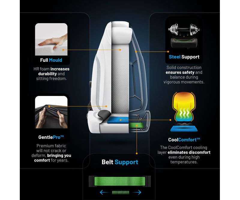 Caracteristici principale ale scaunului de gaming alb: