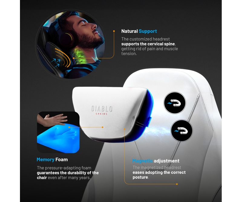 Mecanismul rafinat ProSpine Support™ iti va schimba perspectiva asupra confortului. Acesta iti permite sa reglezi suportul lombar in functie de curbura naturala a coloanei vertebrale. Uita de durerile de spate si de muschii incordati, chiar si dupa ore intregi de joc.Tetiera magnetica impresionanta