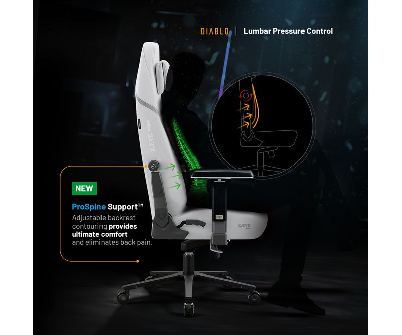 Am proiectat fiecare element al X.Eye Prime pentru a sustine pozitia naturala a corpului si a reduce oboseala. Este un scaun de gaming cu cotiere reglabile, profil ergonomic si functii de personalizare care va vor mentine confortabil in orice situatie.Suport spinal reglabil
