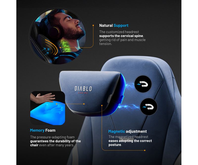 Sistemul ProSpine Support™ este o adevarata revolutie in lumea ergonomiei. Acesta iti permite sa reglezi suportul pentru partea inferioara a spatelui in functie de curba naturala a coloanei vertebrale. Spune adio tensiunii si durerii enervante odata pentru totdeauna!Tetiera magnetica inovatoare