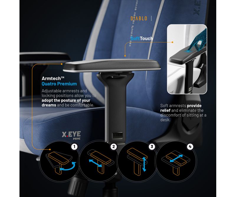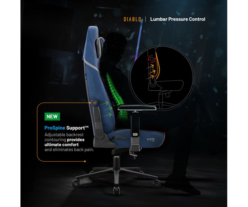 Ne-am stabilit o sarcina principala pentru X.Eye Prime – sa va relaxam in timp ce stati si sa va protejam de oboseala. De aceea, scaunul de gaming ofera o gama larga de reglaje si imbunatatiri, permitandu-va sa gasiti pozitia perfecta pentru orice activitate – de la jocuri intense la munca linistita.Coloana vertebrala a castigat un aliat