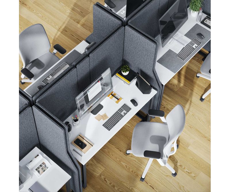- Panourile se conectează ușor și rapid folosind fermoar, oferind libertate în configurarea biroului.