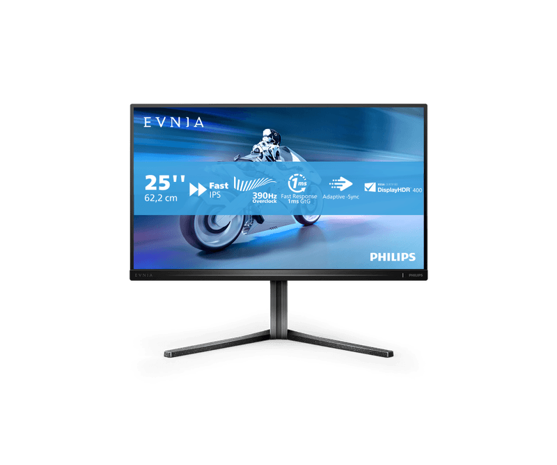 Monitor Philips 24.5 25M2N5200U/00, Diagonal (inch): 24.5, Diagonal (cm): 62, Aspect ratio: 16:9, Panel: Fast IPS, Resolution: 1920x1080, Refresh Rate: 240Hz/390Hz, Response time GtG: 1ms, Response time MPRT: 0.3ms, Brightness (max): 400 cd/m², Contrast (static) : 1000:1, Contrast (dynamic): Mega Infinity DCR, Viewing angle: 178/178, Color Gamut Type: Adobe RGB, Color Gamut Coverage: 0.86, Colours: 16.7M, VESA Wallmount: 100x100, Tilt: -5/+20, HAS: 130mm, Pivot: +/-90°, Swivel: -30/+30, D-SUB: 0, HDMI: x2, DisplayPort: x1, AUX: x1 3.5mm Audio OUT