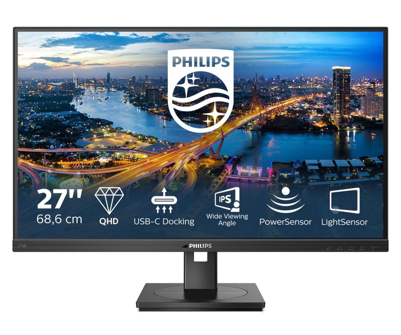 MONITOR Philips 276B1 27 inch, Panel Type: IPS, Backlight: WLED, Resolution: 2560x1440, Aspect Ratio: 16:9, Refresh Rate:75Hz, Response time GtG: 4ms, Brightness: 350 cd/m², Contrast (static): 1000:1, Contrast (dynamic): 50m:1, Viewing angle: 178º(R/L), 178º(U/D), Color Gamut (NTSC/sRGB/Adobe RGB/DCI-P3): 110%/123%, Colours: 16.7M, 2W x 2 speakers, Adjustability: Tilt: -5/35, Height Adjust: 150mm, Pivot: Yes, Swivel: -180/180, Connectivity: HDMI 1x 1.4 1x USB-C 3.2(90W)/4x USB 3.2, 1x Rj-45 DisplayPort 1x 1.4, VESA: 100 x 100