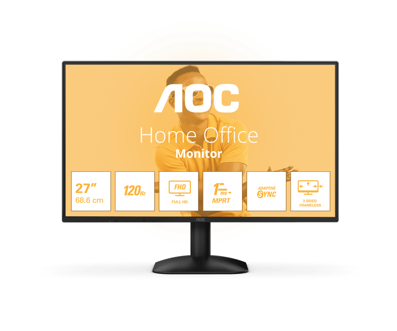 Monitor AOC 27 27B31H, Diagonal (inch): 27, Diagonal (cm): 68, Aspect ratio: 16:9, Panel: IPS, Resolution: 1920x1080, Refresh Rate: 120Hz, Response time GtG: 4ms, Response time MPRT: 1ms, Brightness (max): 300 cd/m², Contrast (static) : 1500:1, Contrast (dynamic): 20M:1, Viewing angle: 178/178, Color Gamut Type: Adobe RGB, Color Gamut Coverage: 87.5%, Colours: 16.7M, VESA Wallmount: 100x100, Tilt: -5/+25, D-SUB: x1, HDMI: x1, DisplayPort: 0