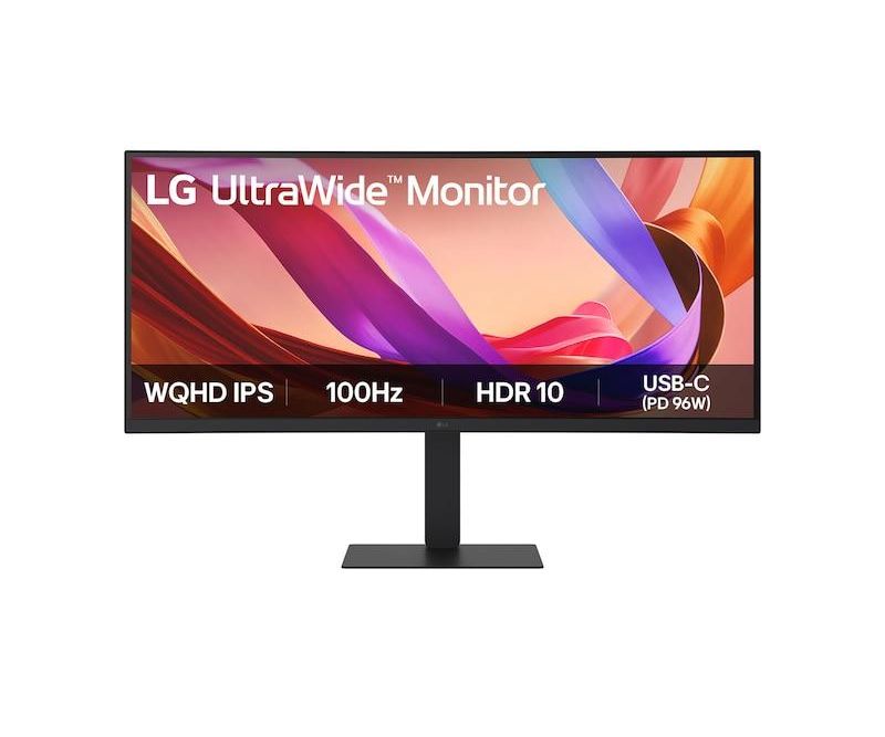 Monitor LG 34 34U650A-B.AEU, Curvature: 3800R, Diagonal (inch): 34, Diagonal (cm): 86, Aspect ratio: 21:9, Panel: WQHD, Resolution: 3440x1440, Refresh Rate: 100Hz, Response time GtG: 5ms, Brightness (max): 300 cd/m², Contrast (static) : 1000:1, Viewing angle: 178/178, Color Gamut Type: sRGB, Color Gamut Coverage: 0.99, Colours: 1.07B, Speakers: 7Wx2, VESA Wallmount: 100x100, Tilt: -5/+21, HAS: 150mm, Swivel: -30/+30, D-SUB: 0, HDMI: x2, DisplayPort: x1, USB Hub: 3.2 Gen 1 in amonte, 3x USB-A 3.2 Gen 1, 1x USB-C 3.2 Gen 1, USB-C: x1, USB-C Power Delivery: 96W, RJ-45: x1, AUX: x1 3.5mm Audio OUT / x1 3.5mm Audio IN