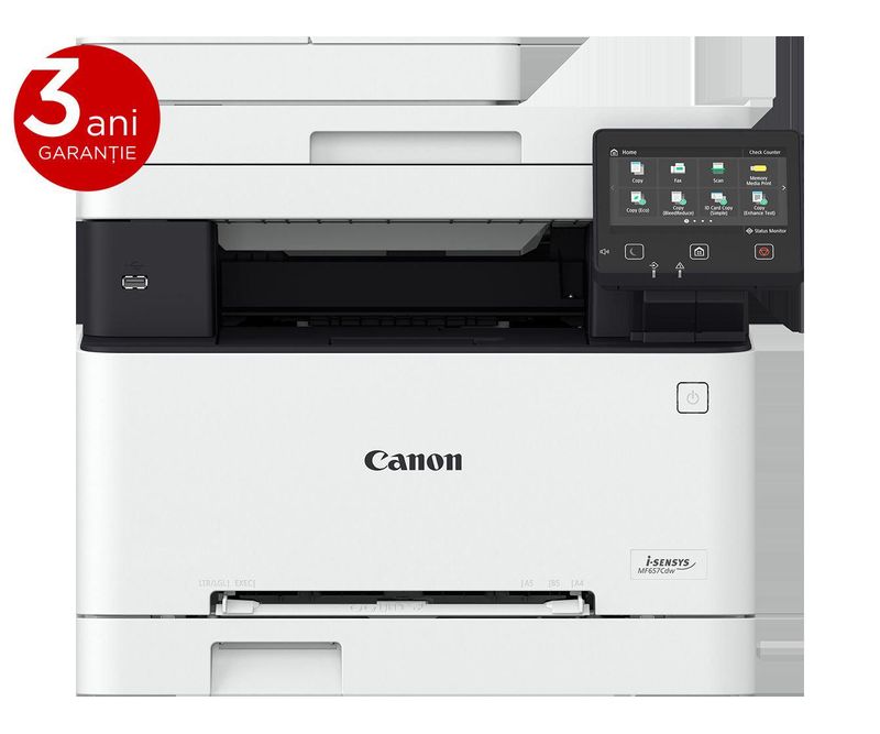 Multifunctional laser color Canon MF651Cw, dimensiune A4(Printare, Copiere, Scanare), viteza max 18ppm, rezolutie max 1200x1200dpi, processor 800Mhz x 2, memorie 1 GB RAM, ,alimentare cu hartie 250 coli, limbaj de printare: UFRII Copiere 18ppm , marire- micsorare 25- 400%, scanare color rezolutie optica600X600 dpi, Scan to USB memory key, E-mail, PC, FTP, Cloud, display LCD tactil, color 12.7cm, volum de printare max 30000pagini/luna, interfata: USB 2.0 Hi-Speed, 10BASE-T/100BASE-TX/1000Base-T, Wireless 802.11b/g/n, Wireless Direct Connection, consumabile: CRG067 BK(1.35k pag.), CRG067H BK(3.13k pag.)CRG067 C/M/Y(1.2k pag.), CRG067H C/M/Y(2.35K pag.), se livreaza cu toner negru 1.35k, color 680 pag.