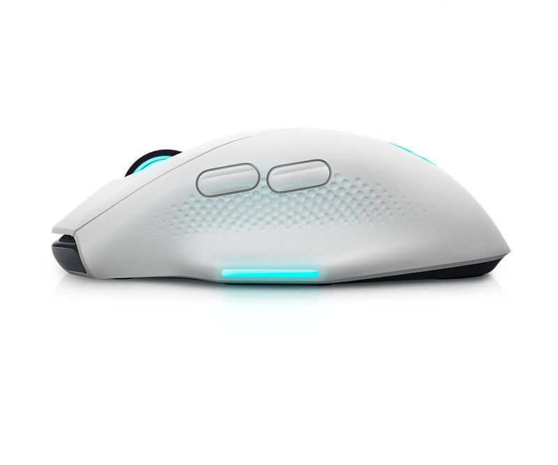 AW Wireless Gaming Mouse AW620M Lunar Light, Connectivity: 2.4GHz Gaming Wireless, USB Wired, Performance: 1000Hz over Wired & 2.4GHz Gaming Wireless, Battery Life: Up to 140 Hours - 2.4GHz Gaming Wireless, Fast Charging: 5 minutes charge for up to 10 hours of gameplay, Battery technology: Polymer Li-ion Rechargeable Battery, Movement Resolution: Native 26,000 DPI, Sensor Max Speed: 650 IPS, Sensor Max Acceleration: 50G, Sensor Technology: Optical, Number of Buttons: 7 Fully Programmable Buttons, arranged, Click Lifespan: 70 Million for L/R Buttons, Lighting: 3 Zones 16.8 Million RGB, AlienFX, Cable Type: 2m Light Ultra-flexible Braided Cable, Colors: Lunar Light, Keyplate Structure: Magnetically- Assisted Independent Keyplates; Optical Switches, Charging Connector: 2- meter USB-A to USB-C light-weight, ultra-flexible nylon braided cable, OS Required: Windows 10 and up, Software Required: Alienware Command Center for customization, Features: Auto-calibration, detachable ultra- flexible nylon braided cord, 7 programmable buttons, 70 million clicks, 5 on-the-fly DPI settings, 16.8 million RGB AlienFX lighting, Dimensions: W x L x H 3.06 x 5.18 x 1.63 inches (77.8 x 131.5 x 41.5 mm), Weight: 0.22 lbs (100g), Service and Support Limited 2-year warranty