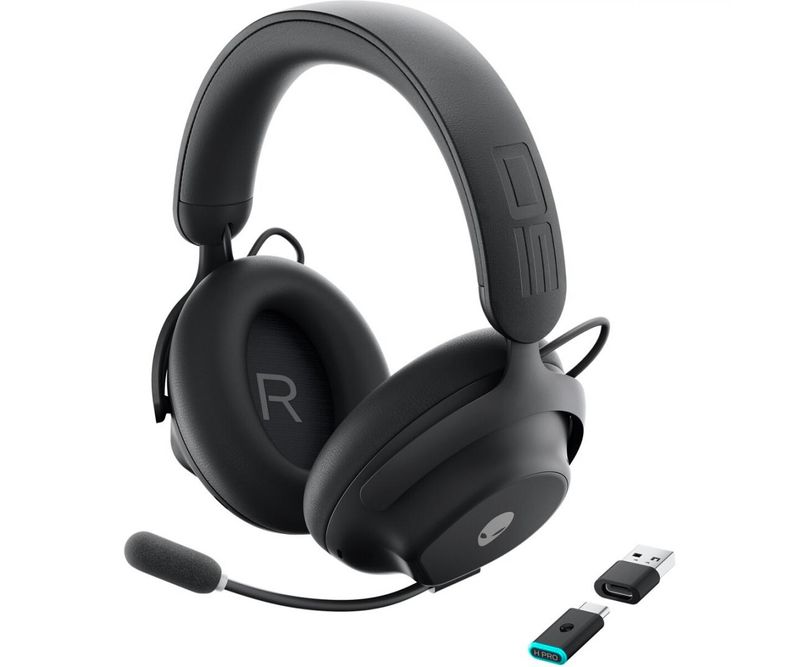 Alienware Pro Wireless Gaming Headset, Connectivity Technology: Wired/Wireless, Wireless Technology: Bluetooth, Wireless Operating Distance: 30m, Bluetooth Standard: Bluetooth 5.3, Impedance: 32 Ohm, Features: 50mm graphene-coated drivers, 2-mic AI noise cancellation, ANC, Noise Canceling: Yes, Fast Charging: Yes, Active Noise Canceling (ANC): Yes, Active Noise Canceling (ANC) Technology: Hybrid, Hi-Res Audio: Yes, Special Material: Graphene coated, Frequency Response: 20Hz-40KHz, Battery Capacity: 750 mAh, Fast Charging Time: 15 minutes for up to 6 hours listening time, Battery Talk Time: Talk: Up to 35 hours (ANC off), Up to 25 hours (ANC on), Listening time: Up to 75 hours (Bluetooth) / 70 hours (2.4GHz) with ANC off, Up to 35 hours (2.4GHz) with ANC on, Battery Rechargeable: Yes, Earpiece Design: Over-the-ear, Driver Size: 50mm, Microphone Technology: Uni-directional, 2-Mic AI Noise Cancellation, Microphone Design: Boom, Detachable Microphone: Yes, Host Interface: USB Type-A, USB Type-C, Charging Interface: USB Type-A, Earpiece Controls: Volume, Mic Control (mute/unmute), ANC mode control button (on/off/transparency), Power On / Off, 2.4GHz/Bluetooth/Pairing, Colour: Dark Side of the Moon, Ear Cushion Material: Memory Foam, Leatherette, Form Factor: Circumaural, Height: 20.5 cm, Width: 15 cm, Depth: 9 cm, Weight (Approximate): 315 g, Package Contents: Pro Wireless Gaming Headset, USB-C Wireless Dongle, USB-A to USB-C Adapter, USB-A to USB-C Cable, Detachable Boom Mic, Mic Shield, Documents, Application/Usage: PC, Gaming Console, Mobile, Compatibility: Playstation 4, Playstation 5, Nintendo Switch, Operating System Platform, Windows 10, Windows 11, Android, iOS, Limited Warranty: 2 Year