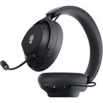 Alienware Pro Wireless Gaming Headset, Connectivity Technology: Wired/Wireless, Wireless Technology: Bluetooth, Wireless Operating Distance: 30m, Bluetooth Standard: Bluetooth 5.3, Impedance: 32 Ohm, Features: 50mm graphene-coated drivers, 2-mic AI noise cancellation, ANC, Noise Canceling: Yes, Fast Charging: Yes, Active Noise Canceling (ANC): Yes, Active Noise Canceling (ANC) Technology: Hybrid, Hi-Res Audio: Yes, Special Material: Graphene coated, Frequency Response: 20Hz-40KHz, Battery Capacity: 750 mAh, Fast Charging Time: 15 minutes for up to 6 hours listening time, Battery Talk Time: Talk: Up to 35 hours (ANC off), Up to 25 hours (ANC on), Listening time: Up to 75 hours (Bluetooth) / 70 hours (2.4GHz) with ANC off, Up to 35 hours (2.4GHz) with ANC on, Battery Rechargeable: Yes, Earpiece Design: Over-the-ear, Driver Size: 50mm, Microphone Technology: Uni-directional, 2-Mic AI Noise Cancellation, Microphone Design: Boom, Detachable Microphone: Yes, Host Interface: USB Type-A, USB Type-C, Charging Interface: USB Type-A, Earpiece Controls: Volume, Mic Control (mute/unmute), ANC mode control button (on/off/transparency), Power On / Off, 2.4GHz/Bluetooth/Pairing, Colour: Dark Side of the Moon, Ear Cushion Material: Memory Foam, Leatherette, Form Factor: Circumaural, Height: 20.5 cm, Width: 15 cm, Depth: 9 cm, Weight (Approximate): 315 g, Package Contents: Pro Wireless Gaming Headset, USB-C Wireless Dongle, USB-A to USB-C Adapter, USB-A to USB-C Cable, Detachable Boom Mic, Mic Shield, Documents, Application/Usage: PC, Gaming Console, Mobile, Compatibility: Playstation 4, Playstation 5, Nintendo Switch, Operating System Platform, Windows 10, Windows 11, Android, iOS, Limited Warranty: 2 Year