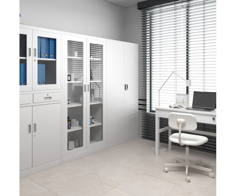 JAN NOWAK Dulap cu usi din sticla AMELIA Dulapul metalic AMELIA cu usi din sticla este o solutie excelenta care combina un dulap solid si robust cu usi din sticla estetice si placute, care atrag privirile. Usa de sticla nu doar ca contribuie la aspectul placut al mobilierului, dar face si munca de zi cu zi mai rapida si mai usoara, deoarece obiectele care se afla in interior sunt imediat vizibile. Otelul gros este acoperit cu vopsea pulbere, astfel incat dulapul din sticla este protejat in mod adecvat impotriva deteriorarii. Vitrina din metal gri AMELIA arata exceptional de bine si va va fi de folos timp de multi ani. Cele mai importante 4 avantaje ale unui dulap cu usi din sticla: Spatiu mare de depozitare - dulapul cu usi din sticla poate gazdui pana la 50 de dosare. Este echipat cu 4 rafturi reglabile in trepte de 25 mm si puteti regla liber inaltimea fiecarui raft. Prin urmare, indiferent de dimensiunea obiectelor depozitate, exista loc pentru orice. Constructie robusta - am folosit otel de 0,6 mm grosime pentru a crea dulapul din sticla si l-am acoperit cu vopsea pulbere foarte rezistenta. Siguranta dulapului este certificata de PZH. Securitate profesionala - o incuietoare solida in 3 puncte protejeaza obiectele din interiorul dulapului nostru metalic. Dulapul fiabil AMELIA este potrivit pentru depozitarea documentelor in conformitate cu cerintele RODO 2018. Dulapul include 2 chei. Practic si placut din punct de vedere estetic - designul simplu si combinatia de culori discrete fac ca dulapul cu usi din sticla sa se potriveasca in orice interior. Sticla de pe partea frontala confera mobilierului lejeritate si faciliteaza gasirea obiectelor. Dulap functional cu usi din sticla Dulapul cu usa din sticla AMELIA este cel mai des utilizat in unitatile de sanatate, spitale, clinici si cabinete medicale. Mai ales datorita fronturilor, prin care se poate vedea ce se afla in interior fara nici cea mai mica problema. Vitrina gri metalic este extrem de functionala, motiv pentru care este potrivita si pentru: birouri, scoli, cabinete sau arhive - vitrina spatioasa din sticla permite o organizare perfecta a documentelor, saloane de infrumusetare, saloane de coafura - produsele de ingrijire ascunse, dar vizibile, inspira incredere clientului, birouri, cabinete - carti, diplome, dosare, toate cele mai importante obiecte sunt depozitate intr-un dulap metalic gri care se poate inchide cu cheie si poate fi accesat doar de persoanele autorizate. Dulap gri - design ingenios Dulapul cu usi din sticla este extrem de stabil si rezistent. Am obtinut acest lucru deoarece am folosit otel solid si gros la productie. Constructia are o grosime de pana la 0,6 mm si este protejata prin acoperire cu vopsea pulbere. Ca urmare, dulapul cu usi din sticla se distinge prin rezistenta extraordinara la deteriorari mecanice. Este de remarcat acoperirea uniforma, precum si culoarea universala. Functionalitatea ar trebui sa mearga mana in mana cu estetica, motiv pentru care dulapul AMELIA, de culoare gri metalic, are geamuri doar pe partea frontala. Partile laterale si spatele dulapului sunt realizate din metal. O astfel de solutie are doua avantaje majore. In primul rand, greutatea dulapului din sticla este mai mica decat in cazul unui dulap fara sticla si este mai usor sa il pastrati in stare perfecta. Il puteti amplasa in siguranta intre piesele de mobilier. In al doilea rand, am inserat gauri in corpul de otel, datorita carora puteti fixa dulapul cu usi din sticla pe perete pentru o si mai mare siguranta. Specificatiile vitrinei AMELIA din metal gri: Inaltime: 185 cm Latime: 90 cm Adancime: 40 cm Greutate: 46.5 kg 4 rafturi reglabile in trepte de 25 mm Garantie de calitate Dulapul cu usi din sticla AMELIA este conceput pentru a fi asamblat de D-voastra. Pentru ca intregul proces sa fie rapid si fara probleme, am creat instructiuni pe hartie si un scurt filmulet video pentru a vedea procesul de asamblare in detaliu.
