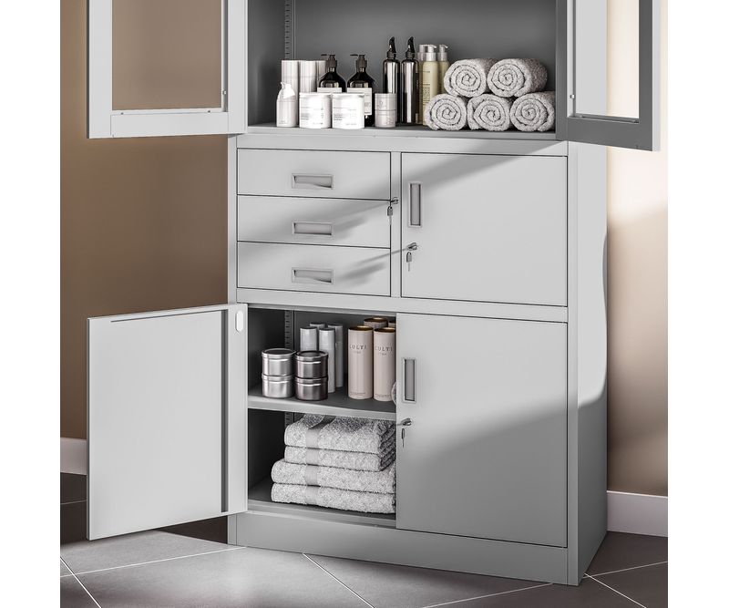 FILIP - dulap metalic cu seif Dulap din otel FILIP, seif cu incuietoare Dulapul din otel cu seif cu incuietoare FILIP este de neegalat in cateva dintre cele mai importante categorii pentru clienti. Este extrem de durabil, ofera un sentiment de siguranta, ofera multe posibilitati de aranjare si poate fi utilizat in multe scopuri diferite. Fie ca veti depozita in el documente sau alte obiecte legate de afaceri - acesta va fi eficient 100%. Clientii care au ales dulapul FILIP il folosesc ca: dulap de arhivare pentru birou (companii, birouri, secretariate, locuinta) dulap medical pentru medicamente (cabinete medicale, clinici private) dulap scule (ateliere, depozite) Dulap cu incuietoare FILIP - Solutii de siguranta Dulapul cu incuietoare FILIP este un model care se comporta exceptional de bine in toate conditiile. De la designul sau, care permite dulapului sa se integreze in orice mediu de birou, pana la multifunctionalitatea sa. Acesta este echipat cu un dulap de arhivare cu sticla si optiuni suplimentare de securitate si depozitare pentru diverse materiale. Dulapul nostru metalic a fost prevazut cu gauri pe partea din spate si pe peretii laterali pentru a putea fi fixat pe perete. Acest lucru va spori securitatea utilizarii zilnice. Gaurile din partea superioara a dulapului fac posibila atasarea unei extensii. Manopera robusta - Pentru fabricarea dulapului de birou FILIP au fost folosite componente de cea mai buna calitate, inclusiv otel de 0,6 mm grosime, care a fost acoperit cu vopsea pulbere. Dulapul este rezistent la deteriorari mecanice. A fost conceput pentru a va servi fara probleme timp de multi ani, motiv pentru care ne asiguram ca sunt durabile si fiabile. Securitate deplina - La proiectarea dulapului, au fost luate in considerare nevoile utilizatorilor sai, una dintre cele mai importante fiind un nivel adecvat de securitate pentru continut. Dulapul FILIP are o vitrata, sertare, un seif si un dulap suplimentar, care sunt inchise cu incuietori separate in 3 puncte. Seiful poate fi blocat suplimentar cu o incuietoare cu cifru combinat. Practic de utilizat - Dulapul de birou FILIP va permite sa depozitati nu numai dosare, desi puteti depozita pana la 30 in el. Datorita sertarelor si a seifului, puteti depozita si alte obiecte necesare pentru biroul sau afacerea D-voastra. Dulap metalic FILIP - dimensiuni de baza inaltime 185 cm latime 90 cm adancime 40 cm greutate 52.4 kg Ce primiti? garantie de calitate produs cu certificat PZH produs conform cu RODO 2018 Colectia JAN NOWAK Mobilierul de birou din colectia JAN NOWAK este un bestseller in categoria mobilier de birou nu doar in Polonia. Ridicam constant standardele de calitate, datorita carora suntem astazi unul dintre cei mai mari furnizori de dulapuri din otel din Europa.