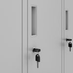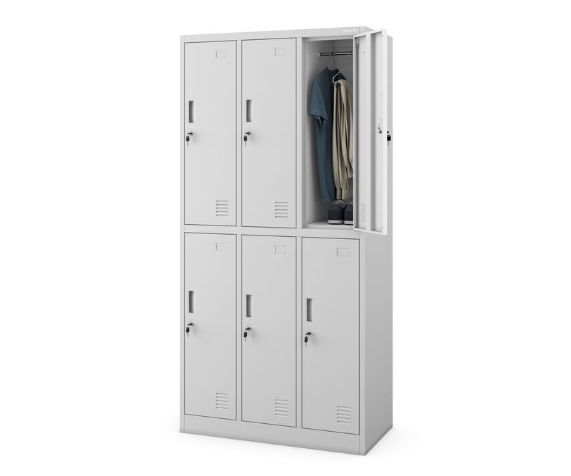 IGOR - dulap vestiar din metal Dulapul IGOR este o piesa de mobilier conceputa cu gandul la spatiile mici. Are o latime de numai 90 cm, dar dispune de pana la 6 compartimente separate, care pot fi inchise cu cheie, pentru haine, obiecte personale sau documente. In plus, fiecare dulap are un suport individual pentru notarea numelui, ceea ce face ca utilizarea zilnica sa fie extrem de eficienta. Recomandam dulapul nostru pentru urmatoarele utilizari: potrivit pentru vestiarele scolilor, atelierelor, firmelor de constructii sau fabricilor de productie fabricate pentru hoteluri, cluburi de fitness, spitale, cabinete medicale dulapurile spatioase, cu incuietoare, va permit sa depozitati in siguranta haine, echipamente de lucru, unelte, obiecte personale si documente. Dulapul vestiar modern IGOR - robust si sigur Dulapul vestiar IGOR este un produs compact conceput pentru vestiare mici. Este perfect pentru locurile in care nu exista spatiu pentru o piesa de mobilier mai mare. Modelul IGOR are un pret exceptional de avantajos si o calitate europeana de top. Este extrem de rezistent la deteriorari mecanice si este fabricat din otel cu o grosime de 0,6 mm acoperit cu vospea pulbere. Dulapul nostru comun este dotat cu 6 compartimente adanci cu incuietoare, ceea ce face ca depozitarea documentelor in el sa fie conforma cu cerintele RODO 2018. Un mare avantaj al acestui model il reprezinta orificiile de ventilatie, care sunt responsabile de circulatia aerului in interiorul dulapurilor individuale. COMUN - In ciuda dimensiunilor sale compacte, dulapul nostru social poate gazdui hainele sau obiectele personale a pana la sase persoane REZISTENT - Fabricat din tabla groasa de otel de 0,6 mm, dulapul comun IGOR este un model fiabil care garanteaza multi ani de utilizare SIGUR - Fiecare compartiment este blocat cu o incuietoare puternica, care se poate inchide cu cheie AERISIT - Asigura o circulatie adecvata a aerului in interiorul dulapului, astfel incat obiectele din interior sa nu se umezeasca MULTIFUNCTIONAL - Fiecare dulap are o bara incorporata si spatiu pentru umerase suplimentare Dulap vestiar IGOR - date tehnice Dimensiuni: Greutate (inclusiv ambalajul): 49 kg Inaltime: 185 cm Latime: 90 cm Adancime: 45 cm Dimensiunile unui singur dulap: Inaltime: 84 cm Latime: 23 cm Adancime: 42 cm Cu noi primiti mai mult! Garantie de calitate - Cele mai bune materiale si fara compromisuri in manopera. Pret extrem de avantajos si calitate superioara Depozitarea documentelor in conformitate cu reglementarile RODO 2018 Aprobat de PZH Este bine de stiut: Livrarea incepand cu 395,00 RON Montare usoara (instructiuni clare incluse) Mobilier de birou JAN NOWAK Marca JAN NOWAK - unul dintre cei mai mari distribuitori de dulapuri metalice din intreaga Europa.