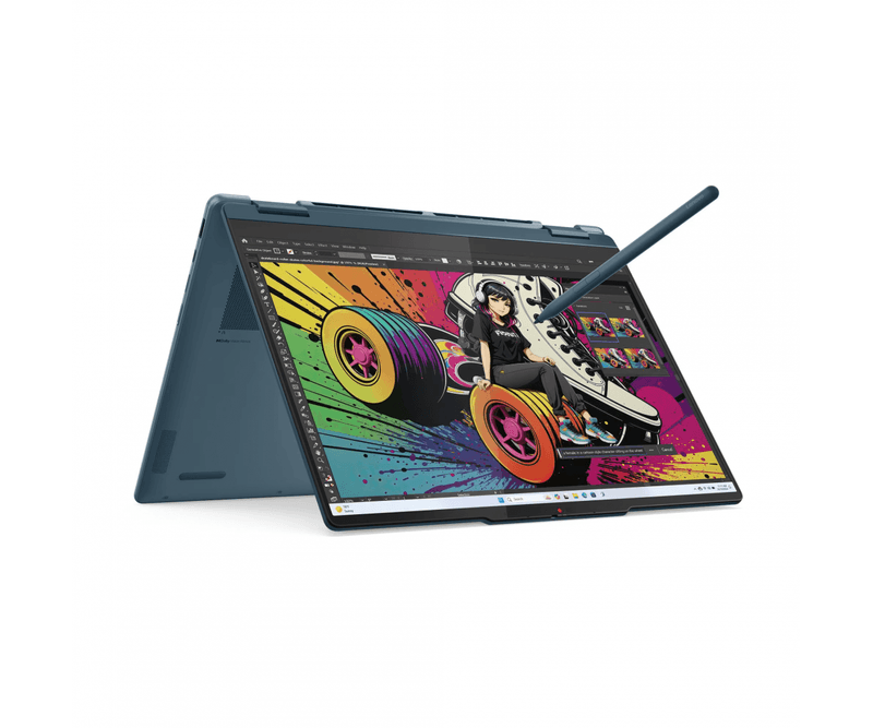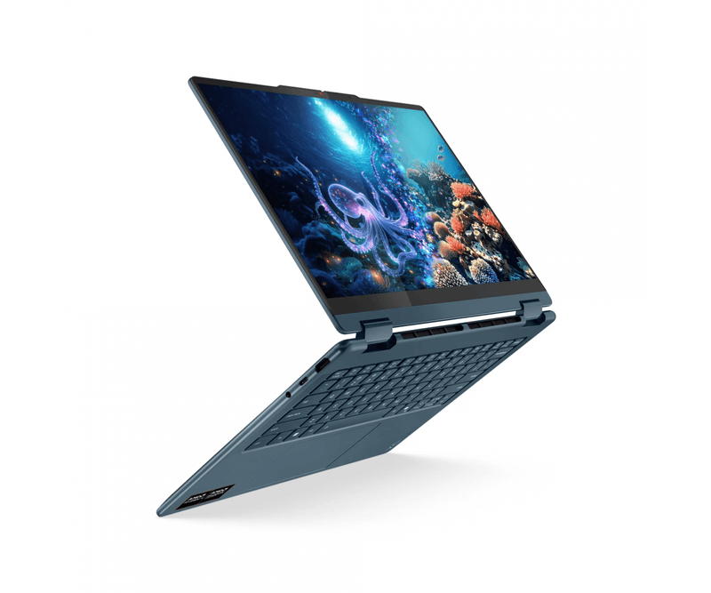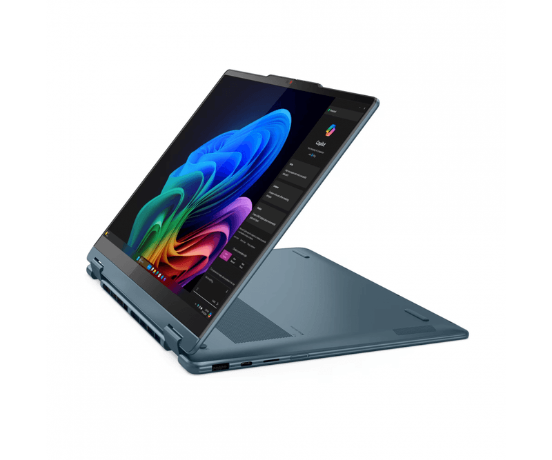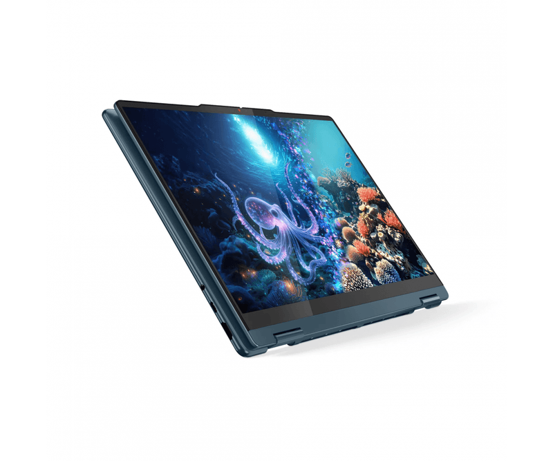 Laptop Lenovo Yoga 7 2-in-1 14AKP10, 14 2.8K WQXGA+ (2880x1800) OLED 1100nits (peak) / 500nits (typical) Glossy / Anti-fingerprint, 100% DCI-P3, 120Hz, Dolby Vision®, TUV Low Blue Light, DisplayHDR™ True Black 1000, Glass, Touch, AMD Ryzen™ AI 7 350 (8C / 16T, 2.0 / 5.0GHz, 8MB L2 / 16MB L3), video Integrated AMD Radeon™ 860M Graphics, RAM 1x 32GB Soldered LPDDR5x-7500; Memory soldered to systemboard, no slots, dual-channel; 32GB soldered memory, not upgradable, SSD 1TB SSD M.2 2242 PCIe® 4.0x4 NVMe®, no ODD, microSD Card Reader, 4 stereo speakers, 2W x2 (woofers), 2W x2 (tweeters), optimized with Dolby Atmos®, Smart Amplifier (AMP), 5.0MP + IR with Privacy Shutter, No Onboard Ethernet, WLAN Wi-Fi® 7, 802.11be 2x2, Bluetooth 5.4, Non-WWAN, No Fingerprint Reader, Porturi: 1x USB-A (USB 5Gbps / USB 3.2 Gen 1), Always On; 1x USB-C® (USB 10Gbps / USB 3.2 Gen 2), with USB PD 3.1 and DisplayPort™ 2.1 UHBR10; 1x USB-C® (USB 10Gbps / USB 3.2 Gen 2), with USB PD 3.1 and DisplayPort™ 1.4a; 1x HDMI® 2.1, up to 4K/60Hz; 1x Headphone / microphone combo jack (3.5mm); 1x microSD card reader, 65W USB-C® Slim (2-pin, Wall-mount), Baterie Integrated 70Wh, Backlit, English, Tidal Teal, Greutate 1.38 kg, Dimensiuni 317 x 228 x 15.45 mm, 2-year, Courier or Carry-in; 3Y Premium Care with Onsite upgrade from 2Y Depot/CCI (CPN), Accesorii None, Windows® 11 Pro, Romanian / English