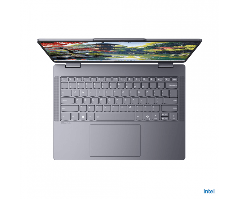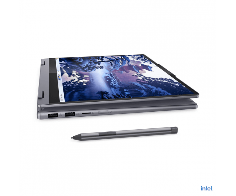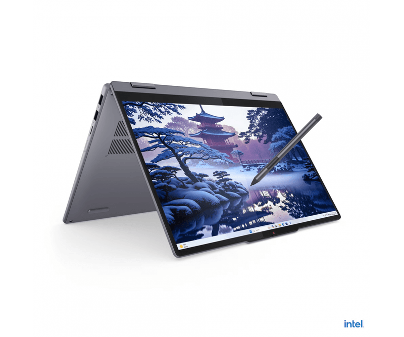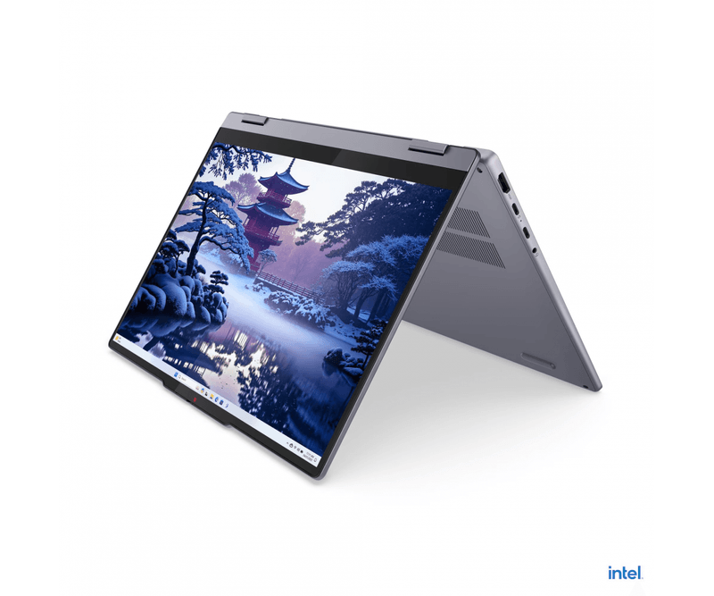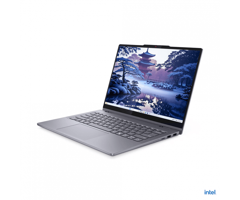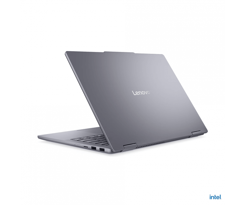 Laptop Lenovo IdeaPad 5 2-in-1 14IAL10, 14 WUXGA (1920x1200) OLED 500nits (peak) / 400nits (typical) Glossy, 100% DCI-P3, 60Hz, TUV Low Blue Light, DisplayHDR™ True Black 500, Glass, Touch, Intel® Core Ultra 7 255H, 16C (6P + 8E + 2LPE) / 16T, Max Turbo up to 5.1GHz, 24MB, video Integrated Intel® Arc™ 140T GPU, RAM 1x 24GB Soldered LPDDR5x-8000; Memory soldered to systemboard, no slots, dual-channel (16GB or 24GB models); 24GB soldered memory, not upgradable, SSD 1TB SSD M.2 2242 PCIe® 4.0x4 NVMe®, no ODD, microSD Card Reader, Stereo speakers, 2W x2, optimized with Dolby Audio™, FHD 1080p + IR with Privacy Shutter, No Onboard Ethernet, WLAN Wi-Fi® 7, 802.11be 2x2, Bluetooth 5.4, Non-WWAN, No Fingerprint Reader, Porturi: 1x USB-A (USB 5Gbps / USB 3.2 Gen 1); 1x USB-A (USB 5Gbps / USB 3.2 Gen 1), Always On; 2x USB-C® (USB 10Gbps / USB 3.2 Gen 2), with USB PD 3.0 and DisplayPort™ 1.4; 1x HDMI® 1.4b; 1x Headphone / microphone combo jack (3.5mm); 1x microSD card reader, 65W USB-C® (3-pin), Baterie Integrated 57Wh, Backlit, English, Luna Grey, Greutate 1.5 kg, Dimensiuni 313 x 227 x 17.5 mm, 2-year, Courier or Carry-in, Accesorii None, Free DOS