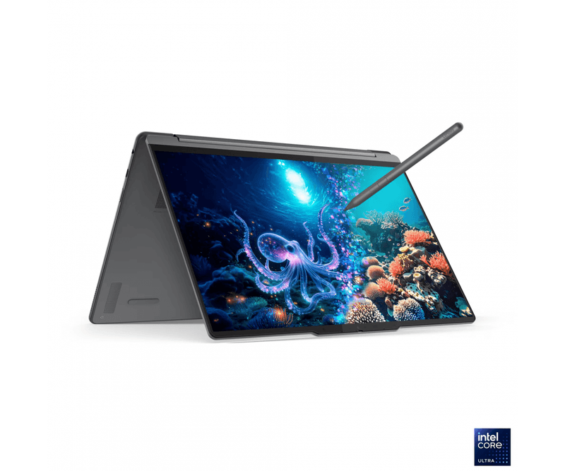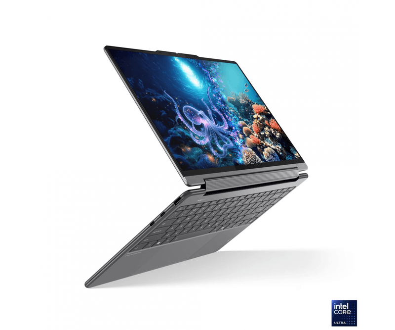 Laptop Lenovo Yoga 9 2-in-1 14ILL10, 14 2.8K WQXGA+ (2880x1800) OLED 1100nits (peak) / 500nits (typical) Glossy / Anti-fingerprint, 100% DCI-P3, 120Hz, Eyesafe®, Dolby Vision®, DisplayHDR™ True Black 1000, Glass, Touch, Intel® Core Ultra 7 258V, 8C (4P + 4LPE) / 8T, Max Turbo up to 4.8GHz, 12MB, video Integrated Intel® Arc™ Graphics 140V, RAM 1x 32GB Soldered LPDDR5x-8533, MoP Memory; Memory soldered to systemboard, no slots, dual-channel; 32GB soldered memory, not upgradable, SSD 1TB SSD M.2 2242 PCIe® 4.0x4 NVMe®, no ODD, No Card reader, 4 stereo speakers, 2W x2 (woofers), 2W x2 (tweeters), optimized with Dolby Atmos®, Smart Amplifier (AMP), 5.0MP + IR with Privacy Shutter, No Onboard Ethernet, WLAN Wi-Fi® 7, 802.11be 2x2, Bluetooth 5.4, Non-WWAN, Touch Style, on Keyboard, Porturi: 1x USB-A (USB 10Gbps / USB 3.2 Gen 2), Always On; 1x USB-C® (USB 20Gbps / USB4® Gen 2x2), with USB PD 3.0 and DisplayPort™ 1.4; 2x USB-C® (Thunderbolt™ 4 / USB4® 40Gbps), with USB PD 3.0 and DisplayPort™ 2.1; 1x Headphone / microphone combo jack (3.5mm), 65W USB-C® (3-pin)Baterie Integrated 75Wh, Backlit, English, Luna Grey, Greutate 1.32 kg, Dimensiuni 316 x 220 x 15.9 mm, 2-year, Courier or Carry-in; 3Y Premium Care with Onsite upgrade from 2Y Depot/CCI (CPN), Accesorii Lenovo® USB-C® 4-in-1 Hub Gen 2, Windows® 11 Pro, Romanian / English