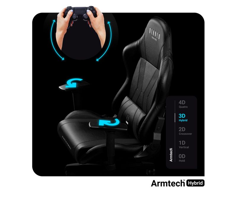 CARACTERISTICI PRINCIPALE: Formati pentru a va sustine coloana vertebrala Perne reglabile confortabile Tetiera unica cu coarne Piele ecologica de inalta calitate, durabila Suporturi pentru brate reglabile in 3 directii Capacitate maxima de incarcare de 136 kg SCAUN GAMING DIABLO X-HORN 2.0 NEGRU: NORMAL SIZE Design clasic Diablo excelent. Trezeste respect de la prima vedere. Ergonomie si design la pachet. Acesta este efectul unei doze duble de spuma HR, perna lombara marita si ajustari inteligente. Noul X-Horn este pregatit de lupta. TILTECH BUTTERFLY Adaptati scaunul Diablo X-Horn exact la inaltimea dvs. si la inaltimea biroului si obtineti o noua optiune pentru relaxare.Spatarul poate fi acum extins cu pana la 140° si blocat in orice punct. Va asteapta o noua dimensiune a confortului!Veti obtine o experienta placuta si sigura de leganare cu functia Tilttech™ Swing.Mecanismul de ridicare permite ca scaunul sa fie reglat in sus si in jos.TAPITERIE DIN PIELE ECOLOGICA HDS™ Expresivitatea mata a negrului face ca demonii de joc sa se trezeasca. Tesaturile cu logo-ul Diablo si detaliile sofisticate atrag privirile geloase, inspira respect si schimba locul obisnuit de la birou intr-un spatiu profesionist pentru jocuri. Acest model arata mai bine decat perfect in fiecare camera, motiv pentru care trebuie sa-l ai si tu.CALITATE SUPERIOARA Tapiteria scaunului nostru de gaming are un material rezistent la abraziune si piele ecologica placuta. Impresioneaza prin aspectul sau si curatarea simpla.STRAT SUPLIMENTAR DE SPUMA IN CAPTUSEALA Am captusit tapiteria cu un strat suplimentar de spuma elastica, datorita careia veti descoperi o noua latura a cuvantului „confort”.TETIERA COMODA Aceasta va sustine segmentul cervical al coloanei vertebrale si va relaxa eficient muschii gatului. Tetiera este umpluta cu spuma memory elastica, care se adapteaza perfect formei capului si presiunii, „amintindu-si” pozitia preferata.PERNA LOMBARA MARITA Noul scaun X-Horn a fost echipat cu o perna lombara marita, ajustare in sus-jos incorporata, care va sprijini si mai eficient coloana lombara. Ca si in cazul la tetiera, spuma hiper-elastica se adapteaza perfect formei spatelui si „isi aminteste” pozitia ta. Cand va ridicati in picioare, deformarea va disparea si perna va reveni la forma sa initiala. Inteligent nu?COTIERE REGLABILE HYBRID™ In cele din urma, ajustati cotierele asa cum doriti. Reglarea tripla si cotierele solide va usureaza antebratele, umerii si incheieturile. Confort la maxim!BAZA SI CONSTRUCTIE PUTERNICA Baza este completata cu rotite din cauciuc PFC™ 360, oferind podelei camerei o protectie excelenta impotriva zgarieturilor. Liftul de clasa a 4-a asigura o amortizare adecvata datorita sistemului Air Damper™ incorporat.