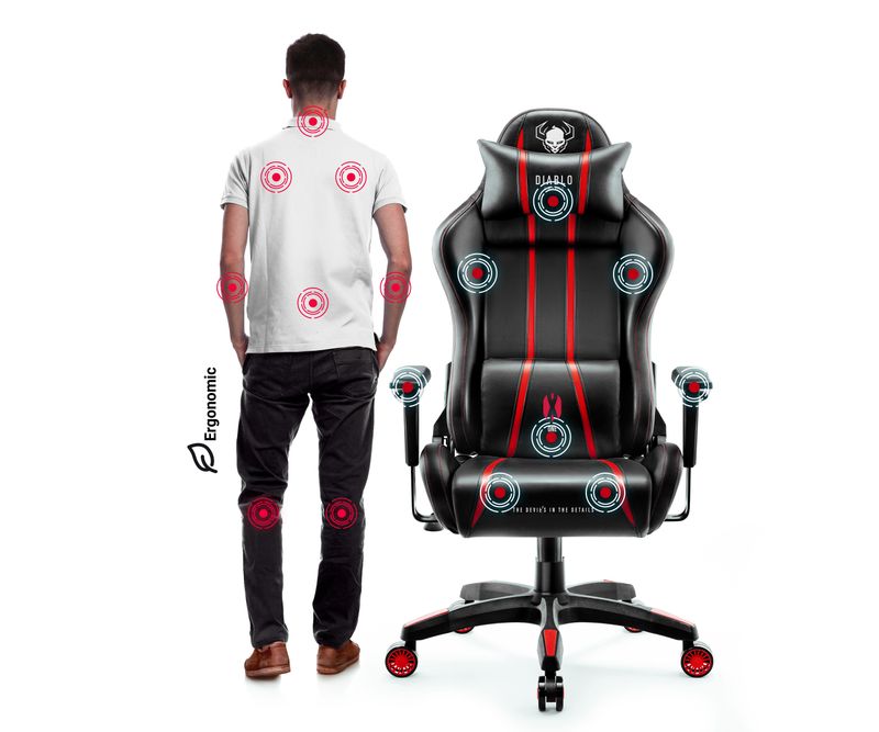 CARACTERISTICI PRINCIPALE: Cel mai bine vandut model de scaune Diablo Forma care va sustine coloana vertebrala Perne confortabile, reglabile Umplutura moale din spuma HR Piele ecologica durabila, de inalta calitate Suporturi pentru brate reglabile in sus si in jos Capacitate maxima de incarcare de 136 kg SCAUN DE GAMING GENERATIE X-ONE 2.0 NORMAL SIZE: NEGRU-ROSU Va prezentam scaun de birou care sa ofere dumneavoastra siguranta si confortul necesar, incercati scaunul Diablo X-One 2.0. Acest model unic va va sustine perfect silueta si, datorita solutiilor inovatoare care sustin pozitia corecta a coloanei vertebrale, va modela activ obiceiul de a sta in pozitia corecta.ADAPTATE CU PRECIZIE Adaptati scaunul Diablo X-One 2.0 exact la inaltimea dvs. si la inaltimea biroului si obtineti o noua optiune pentru relaxare.Ajustarea scaunului in functie de inaltime sau birou este esentiala. Diablo X-One 2.0 are o reglare sus-jos fluida si precisa.Scaunul de gaming din material textil nu putea sa nu includa functia populara de balansare. Tilttech™ Swing asigura o balansare relaxanta a scaunului.Sistemul Tilttech™ Gear permite inclinarea spatarului pana la 140° si blocarea in orice pozitie dorita. Veti obtine suport si confort in orice situatie.DESIGN NEOBISNUIT Pachetul de solutii practice si inovatoare a fost combinat cu solutiile originale One Vision™ Design, care te va uimi din prima privire! Embleme caracteristice, constructie sportiva, design neobisnuit si tapiterie alba ca zapada confera modelului Diablo X-One 2.0 un caracter distinctiv, excelent cu care camera ta se va schimba spectaculos.PIELE ECOLOGICA HDS™ Stim perfect ca produsele dedicate celor mai tineri trebuie sa fie extrem de practice. De aceea piele ecologica HDS™ din este surprinzator de rezistenta la abraziune si extrem de usor de curatat. Firele puternice cu care a fost confectionata tapiteria asigura tensiunea corecta si durabilitatea suplimentara, datorita carora va arata excelent multi ani.SPUMA SPECIALA HR Cu Diablo X-One 2.0, invatarea de zi cu zi sau distractia la birou vor deveni extrem de confortabile si placute, deoarece intreaga silueta masiva a scaunului este plina de spuma moale HR. Relaxarea si confortul este garantat!TETIERA PROFILATA Tetiera moale, umpluta cu spuma HR, ofera suport ergonomic partii cervicale a coloanei vertebrale. Veti obtine pozitionarea corecta a gatului si a capului, ceea ce va va permite sa evitati consecintele negative ale sederii prelungite in pozitia sezand.PERNA LOMBARA Perna lombara va va proteja partea inferioara a spatelui impotriva pozitionarii incorecte. Va va oferi o pozitie confortabila si naturala, care va preveni in mod activ formarea sau agravarea defectelor de postura. Forma conturata a pernei si umplutura din spuma moale u memorie HR garanteaza un confort suplimentar.COTIERE CU REGLARE Garantia unei pozitii stabile si sigure este pozitionarea corecta a mainilor. Cotierele Armtech™ Vertical SoftTouch cu reglarea practica a inaltimii va usura umerii, antebratele si incheieturile, va facilita adaptarea la perna lombara si tetiera si va asigura pozitia in mod corespunzator. Confort suplimentar si suport moale pentru antebrate sunt oferite de spuma care acopera partea superioara a cotierelor.BAZA STABILA Rotile durabile PFC™ 360 cu diametrul de 75 mm sunt echipate cu jante si, datorita stratului de cauciuc, protejeaza perfect podeaua impotriva zgarieturilor. Scaunul este echipat cu mecanism de amortizare Air Damper™. Diablo X-One 2.0 se va adapta la fiecare miscare a tau, ceea ce va oferi si mai mult confort tau.