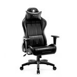 CARACTERISTICI PRINCIPALE: Cel mai bine vandut model de scaune Diablo Forma care va sustine coloana vertebrala Perne confortabile, reglabile Umplutura moale din spuma HR Piele ecologica durabila, de inalta calitate Suporturi pentru brate reglabile in sus si in jos Capacitate maxima de incarcare de 136 kg SCAUN DE GAMING NOUA GENERATIE X-ONE 2.0 NORMAL SIZE: NEGRU Va prezentam noul scaun de birou care sa ofere siguranta si confortul necesar, incercati scaunul Diablo X-One 2.0. Acest model unic va sustine perfect figura si datorita solutiilor inovatoare care sustin mentinerea pozitiei corecte a coloanei vertebrale, va modela in mod activ obiceiul de a sta in pozitia corecta. ADAPTATE CU PRECIZIE Adaptati scaunul Diablo X-One 2.0 exact la inaltimea dvs. si la inaltimea biroului si obtineti o noua optiune pentru relaxare.Ajustarea scaunului in functie de inaltime sau birou este esentiala. Diablo X-One 2.0 are o reglare sus-jos fluida si precisa.Scaunul de gaming din material textil nu putea sa nu includa functia populara de balansare. Tilttech™ Swing asigura o balansare relaxanta a scaunului.Sistemul Tilttech™ Gear permite inclinarea spatarului pana la 140° si blocarea in orice pozitie dorita. Veti obtine suport si confort in orice situatie.DESIGN NEOBISNUIT Pachetul de solutii practice si inovatoare a fost combinat cu solutiile originale One Vision™ Design, care te va uimi din prima privire! Embleme caracteristice, constructie sportiva, design neobisnuit si tapiterie alba ca zapada confera modelului Diablo X-One 2.0 un caracter distinctiv, excelent cu care camera ta se va schimba spectaculos.PIELE ECOLOGICA GENERATIA IV HDS™ Stim perfect ca produsele dedicate trebuie sa fie extrem de practice. De aceea piele ecologica HDS™ din este surprinzator de rezistenta la abraziune si extrem de usor de curatat. Firele puternice cu care a fost confectionata tapiteria asigura tensiunea corecta si durabilitatea suplimentara, datorita carora va arata excelent multi ani.SPUMA SPECIALA HR Cu Diablo X-One 2.0, invatarea de zi cu zi sau distractia la birou vor deveni extrem de confortabile si placute, deoarece intreaga silueta masiva a scaunului este plina de spuma moale HR. Relaxarea si confortul este garantat!TETIERA PROFILATA Tetiera moale, umpluta cu spuma HR, ofera suport ergonomic partii cervicale a coloanei vertebrale. Veti obtine pozitionarea corecta a gatului si a capului, ceea ce va va permite sa evitati consecintele negative ale sederii prelungite in pozitia sezand.PERNA LOMBARA Perna lombara va va proteja partea inferioara a spatelui impotriva pozitionarii incorecte. Va va oferi o pozitie confortabila si naturala, care va preveni in mod activ formarea sau agravarea defectelor de postura. Forma conturata a pernei si umplutura din spuma moale u memorie HR garanteaza un confort suplimentar.COTIERE CU REGLARE Garantia unei pozitii stabile si sigure este pozitionarea corecta a mainilor. Cotierele Armtech™ Vertical SoftTouch cu reglarea practica a inaltimii va usura umerii, antebratele si incheieturile, va facilita adaptarea la perna lombara si tetiera si va asigura pozitia in mod corespunzator. Confort suplimentar si suport moale pentru antebrate sunt oferite de spuma care acopera partea superioara a cotierelor.BAZA STABILA Rotile durabile PFC™ 360 cu diametrul de 75 mm sunt echipate cu jante si, datorita stratului de cauciuc, protejeaza perfect podeaua impotriva zgarieturilor. Scaunul este echipat cu mecanism de amortizare Air Damper™. Diablo X-One 2.0 se va adapta la fiecare miscare a tau, ceea ce va oferi si mai mult confort tau.
