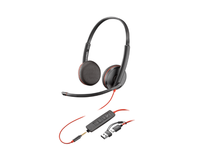 Poly Blackwire 3225 Stereo USB-C Headset +3.5mm Plug +USB-C/A Adapter