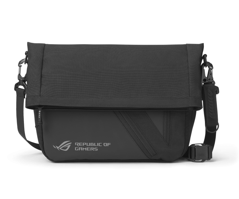 Geanta ROG Archer Messenger 14 (90XB07C0-BME000), compatibil laptop 14″, design 10-in-1 cu compartiment principal captusit pentru laptop, buzunare interne pentru accesorii, zona frontala cu acces rapid, organizator intern, material rezistent la uzura, dimensiuni 31 × 27 × 11 cm, culoare negru
