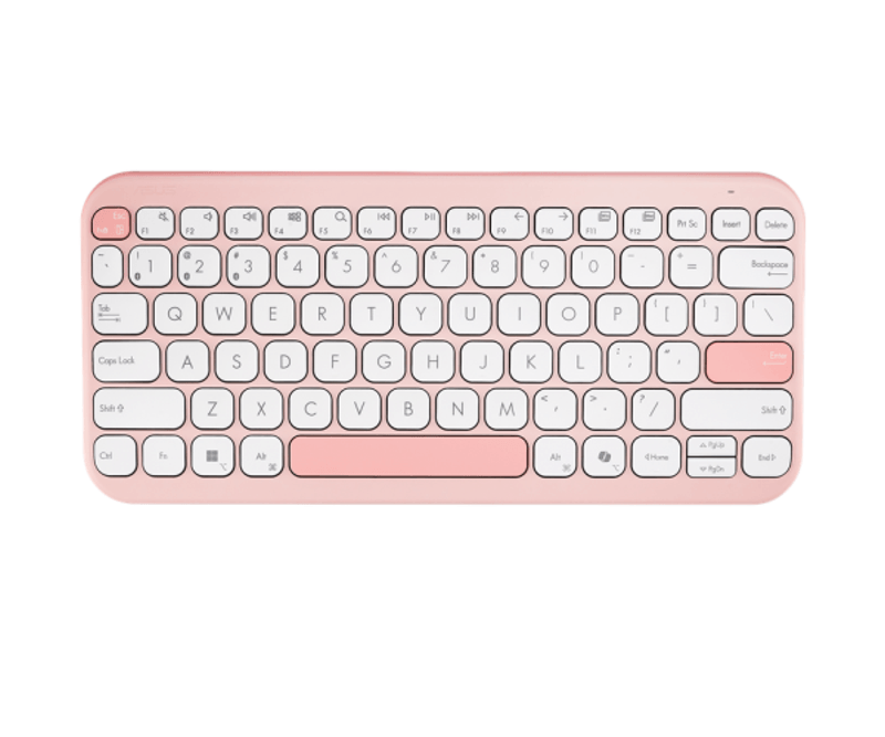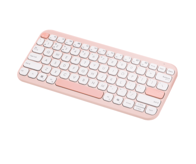 Tastatura wireless ASUS Marshmallow KW100, Bluetooth 5.0, multi-device (3 dispozitive), scissor keys cursa 1,6 mm, 2 niveluri kickstand, 2×AAA autonomie pana la ~24 luni, dimensiuni 282×130×18,4 mm, greutate 374,8 g, compatibila Windows, ChromeOS, macOS, iOS, iPadOS