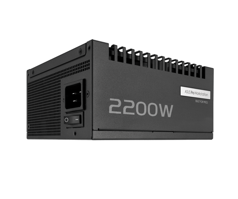 ASUS Pro WS 2200W Platinum. Total power: 2200 W, AC input voltage: 200 - 240 V, Power Factor Correction (PFC) type: Active. Motherboard power connector: 20+4 pin ATX, Motherboard power cable length: 61 cm, SATA power cable length: 120,400 mm. Purpose: PC, Power supply unit (PSU) form factor: ATX, 80 PLUS certification: 80 PLUS Platinum. Product colour: Black, Cooling type: Active. Compliance certificates: RoHS