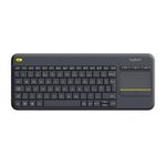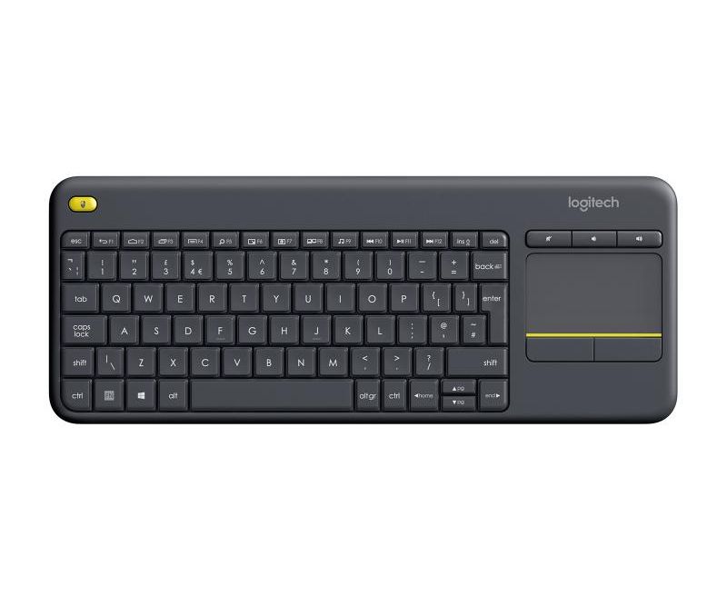 Tastatura wireless Logitech Touch K400 Plus, interfata USB, cu touchpad, dimensiuni 354.3 x 139.9 x 23.5 mm, negru
