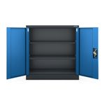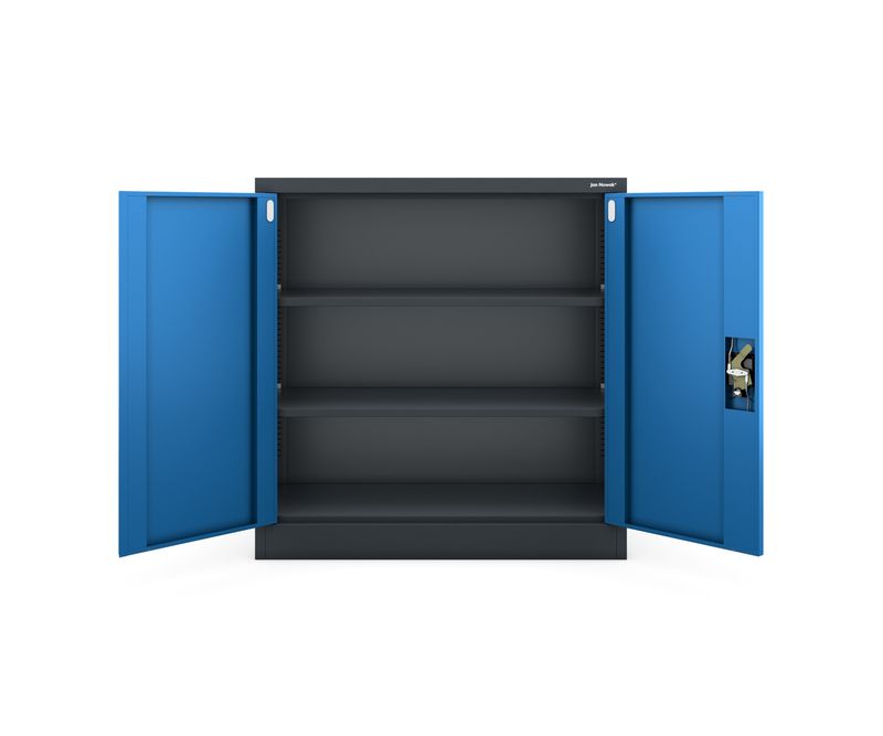 Dulap pentru dosare cu cheie JAN NOWAK BEATA Daca sunteti in cautarea unui dulap pentru dosare cu cheie, cu dimensiuni compacte, modelul BEATA este ideal. Constructia robusta din otel cu grosimea de 0,6 mm, doua rafturi reglabile si o incuietoare robusta vor transforma depozitarea documentelor intr-o pura placere. Se va potrivi chiar si intr-un spatiu mic, dar va face fata provocarilor si ca parte a unui set de mobilier de birou. Dulapul gri BEATA este rezistent, rezistent la deteriorari si, in acelasi timp, foarte placut din punct de vedere estetic. Este ideal pentru depozitarea documentelor in birouri, cabinete sau arhive, a medicamentelor in unitatile medicale, a produselor cosmetice in saloanele de infrumusetare si a uneltelor in ateliere si depozite. Explorati posibilitatile dulapului pentru dosare BEATA In ciuda dimensiunilor sale mici, dulapul cu usi BEATA este extrem de spatios. Doua rafturi ofera trei nivele cu spatiu de pana la 25 de dosare. Constructia din otel este extrem de robusta, astfel incat greutatea maxima pentru un singur nivel este de pana la 50 kg. Micul dulap are mult mai multe intrebuintari decat depozitarea documentelor. Am facut posibila ajustarea inaltimii rafturilor, astfel incat sa puteti incadra o gama larga de obiecte fara probleme. Reglarea in trepte de 25 mm va ofera libertate totala pentru a crea interiorul dulapului de dosare. Dulap metalic robust Pentru spatii cum ar fi birourile, oficiile, atelierele, mobilierul functional creat din metal este cel mai potrivit. Dulapul de dosare BEATA nu va ceda nici in cele mai grele conditii, datorita otelului de inalta calitate, pe care l-am acoperit cu vopsea pulbere. Aceasta combinatie a facut posibila obtinerea unei rezistente excelente la deteriorare. In plus, dulapul cu usi are o culoare estetica placuta si este extrem de usor de intretinut. Orice murdarie poate fi indepartata cu o carpa umeda si putin detergent. Dulapul de arhivare BEATA este adaptat la cerintele RODO 2018 si va stoca in siguranta documentele care contin date cu caracter personal. Doar persoanele autorizate vor avea acces la elementele stocate, deoarece continutul este protejat de un mecanism de blocare in 3 puncte. Odata cu achizitionarea dulapului gri BEATA, veti primi 2 chei. Scopul nostru este de a face ca dulapurile noastre cu cheie sa reziste cat mai mult timp posibil. Din acest motiv, acordam o mare importanta unei manopere atente si calitatii ridicate a componentelor utilizate. Solutiile de depozitare a documentelor JAN NOWAK sunt aprobate de PZH. Dulap gri BEATA cu usi: Inaltime: 93 cm Latime: 90 cm Adancime: 40 cm Greutate: 24 kg Culoare: albastru-antracit Capacitate maxima de incarcare 200 kg Trei niveluri spatioase de depozitare cu rafturi reglabile Fabricat din otel acoperit cu vopsea pulbere Garantie de calitate Expedim dulapul pentru dosare BEATA pe piese. Asamblarea mobilierului este usoara si dureaza cateva minute. Inainte de asamblare, va recomandam sa cititi instructiunile de pe hartie sau sa folositi materialul video.